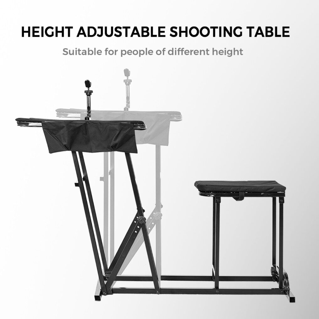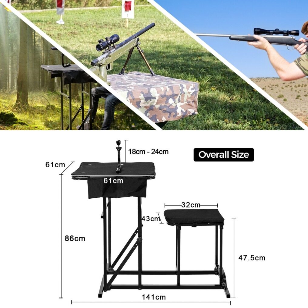 Spacious Shooting Space with Gun Rest: The square padded tabletop measures 61cm x 61cm in length and width, providing spacious space for you to place guns and comfortably rest your arms. Plus, the front Y-shape gun rest swivels 360 degrees for both left-hand and right-handed shooters and can be adjusted to your most suitable shooting position.