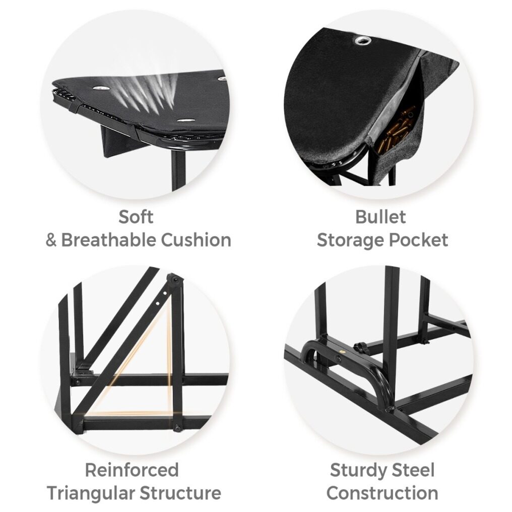 Sturdy Construction with Strong Load-bearing: Constructed by high-strength steel tubes, the shooting table is durable and stable for long-lasting performance, bearing weight up to 136kg. Side horizontal bars and reinforced triangular structure add extra stability. The anti-rust powder-coated finish extends longevity to withstand outdoor elements.