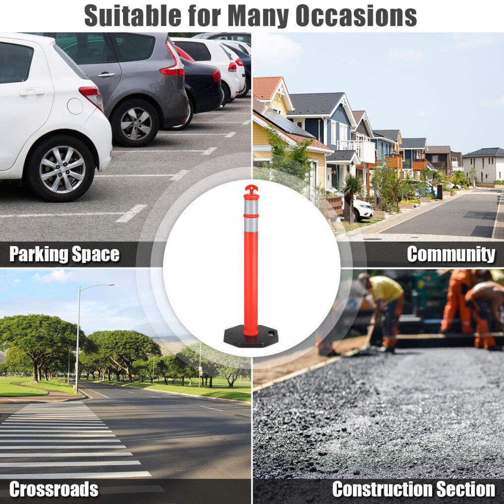 Countless Uses for Diverse Places: The traffic delineator poles are pretty versatile. Delineator safety posts can be quickly set up, arranged and re-arranged as situations change. In addition, they are perfect poles as parking posts, road markets, street stanchions or garage/ driveway caution signs.