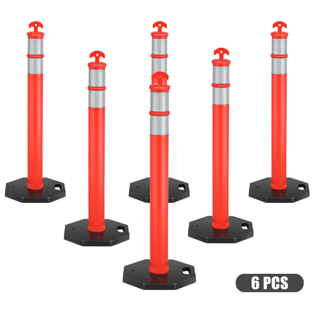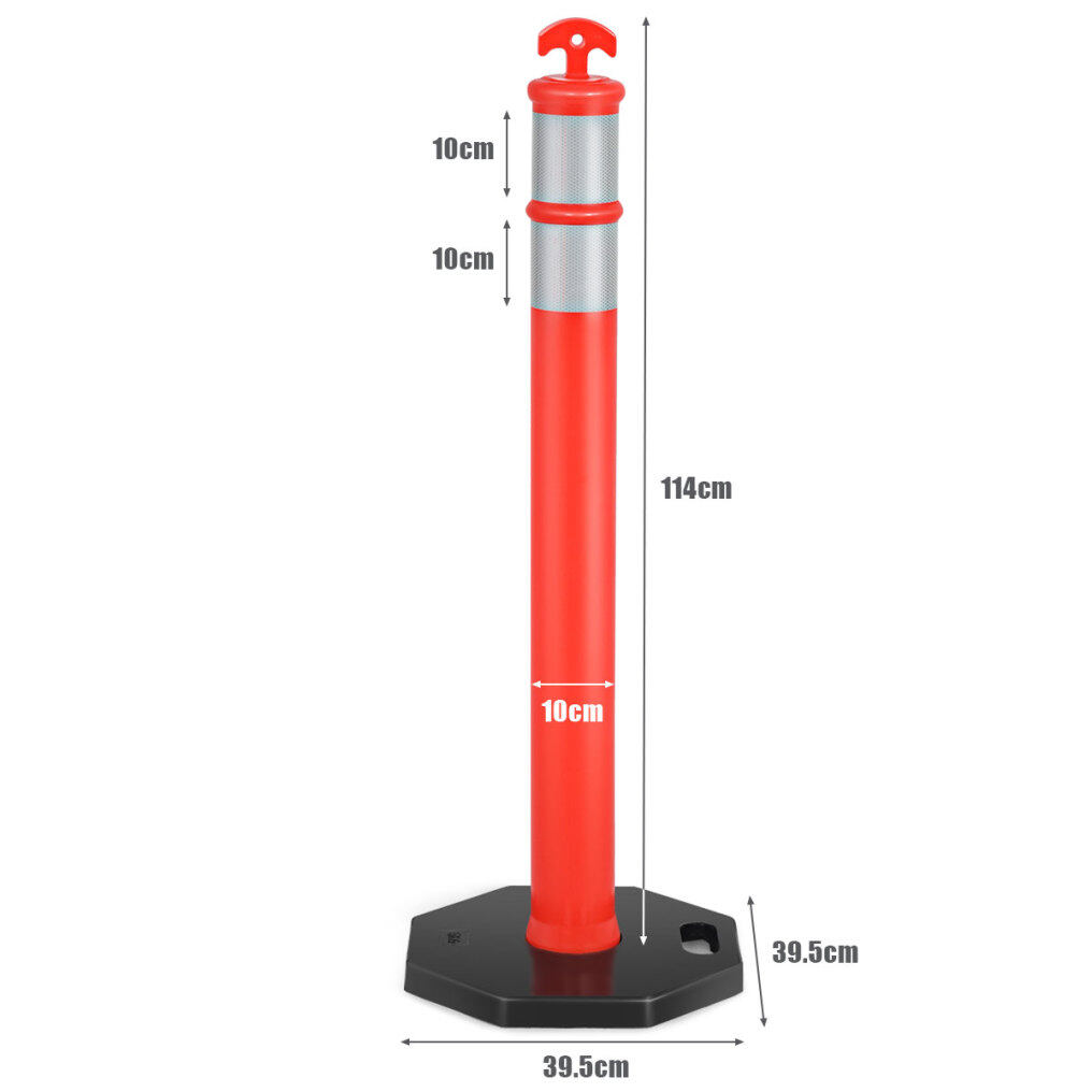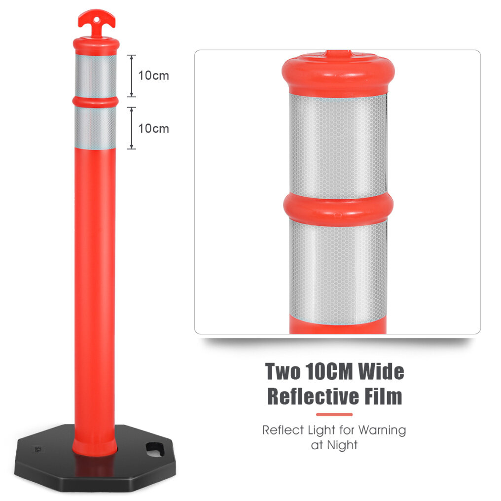 Made of premium and durable material, they can ensure long service life and will not easily deform. In addition, the post is attached with 2 high-intensity prismatic reflective collars, and then it can bring attention to upcoming cautions and also guide traffic. As for the rubber base, it is pretty stable and durable.