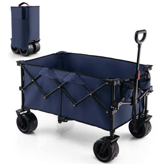 ● Wide All-Terrain Wheels: The collapsible wagon come with heavy duty 7"x 4" thick wide solid wheels. 2 universal front wheels and 2 directional rear wheels can move to every direction you want to go easily , it's suitable for various road surfaces like the cobbled road, asphalt, dust and grass.