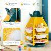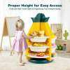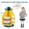 Designed with 8 plastic bins and 4 shelves, our toy storage rack features a large storing capacity to sort out your kids’ messy toys. Equipped with wheels and the rail, this rack can rotate 360°for convenient access. Your kids will fall in love with the storage and develop a good habit of organizing things. More importantly, the kids-friendly PE material guarantees a 100% safe environment for carefree playing time. The unique pineapple appearance also makes it a nice decoration in kids’ rooms.