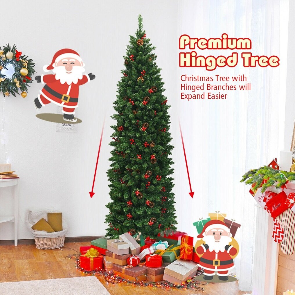 ● LED Lights and Decorations: 250 LED lights are included to emit the soft light and create a warm atmosphere. 62 groups of pine cones and red berries are very decorative and make the tree not look monotonous. It offers a more festive atmosphere and adds a touch of nature year-round. It is ideal for home and business use.