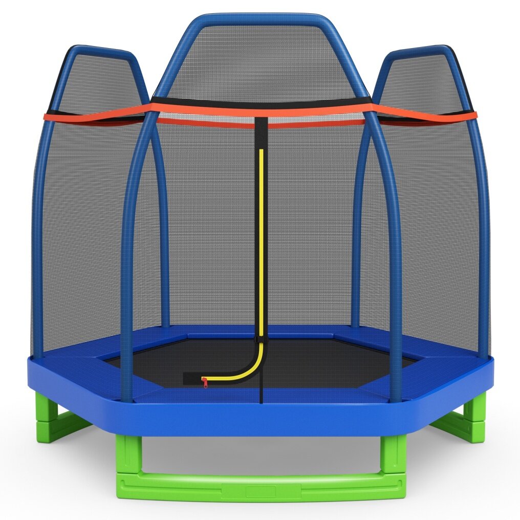 Kids Trampoline with Safety Enclosure Net for Outdoor Play-Blue