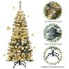 The tree, crafted with 242 branch tips and snow flocked leaves, is leafy and elegant. It will give you the illusion of a full-body genuine tree. 150 warm LED lights will bring a festival glow to your room. High quality PVC branch tips with exquisite craftsmanship will not fall off or fade easily, ensuring long term use. Supported by sturdy metal stand, this artificial Christmas tree will keep standing upright for years to come. At the same time, the metal stand is foldable to facilitate storage. All hinged construction makes the artificial tree easy to set up and fluff. In addition, this Xmas tree can be divided into 2 sections and placed in a storage bag for future reuse easily. With its slim pencil design and realistic appearance, this artificial Christmas tree is perfect for display in corners or small rooms.