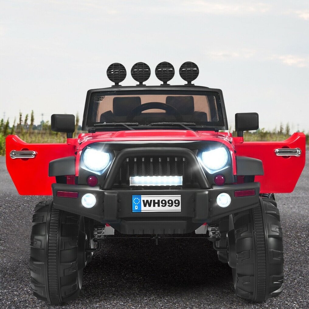 ● Real Driving Experience: This ride-on truck features a double door with a magnetic lock, a multi-media center, a shifter for forward and reverse, horn buttons, shining LED lights, and so on. Kids can switch modes and adjust the volume by pressing the button on the dashboard. These designs will give your kids an authentic driving experience.
