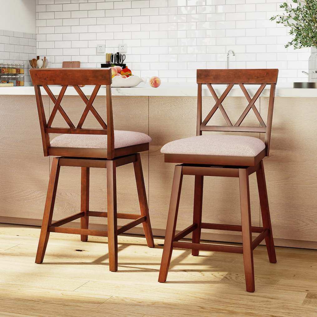● 360° Swivel Convenience: Each bar stool features a smooth 360-degree swivel mechanism, allowing effortless rotation in any direction. This makes them ideal for interacting with guests or easily accessing items placed on your countertop.