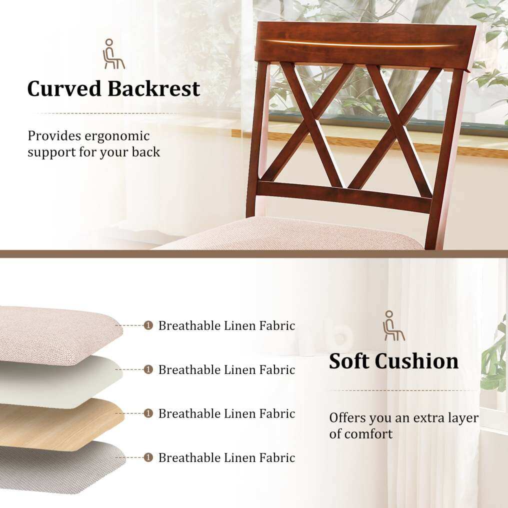 ● Layered Upholstered Comfort: The seats of these kitchen island chairs are designed with multiple layers, including breathable linen fabric, high-density sponge, sturdy engineered wood, and non-woven fabric base. This combination ensures a long-lasting seating pleasure.