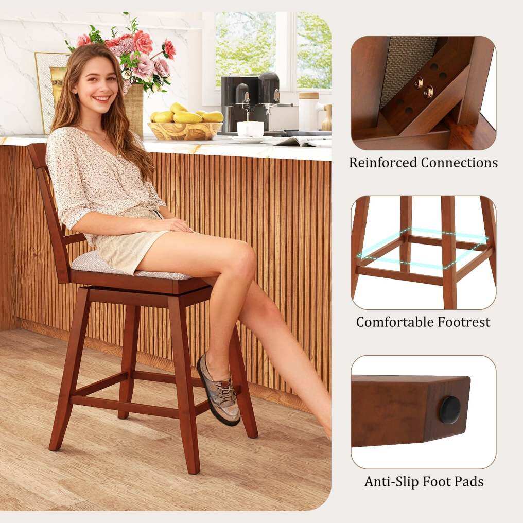 ● Solid Rubber Wood Frame: Supported by a sturdy rubber wood frame, the counter/bar height stools boast remarkable strength and longevity. The natural wood finish also contributes a warm, rustic charm to your space.