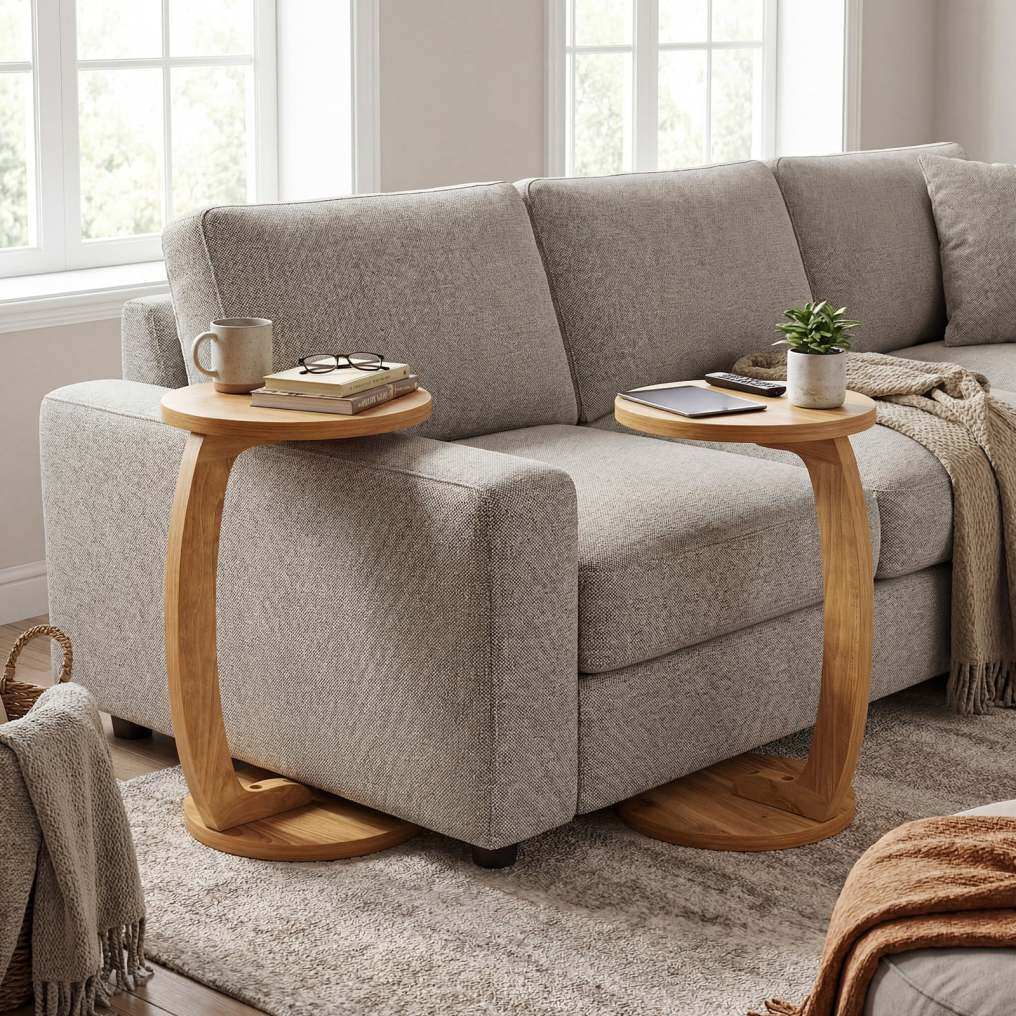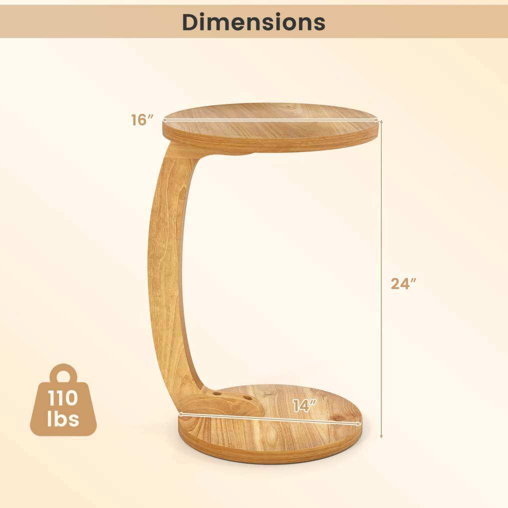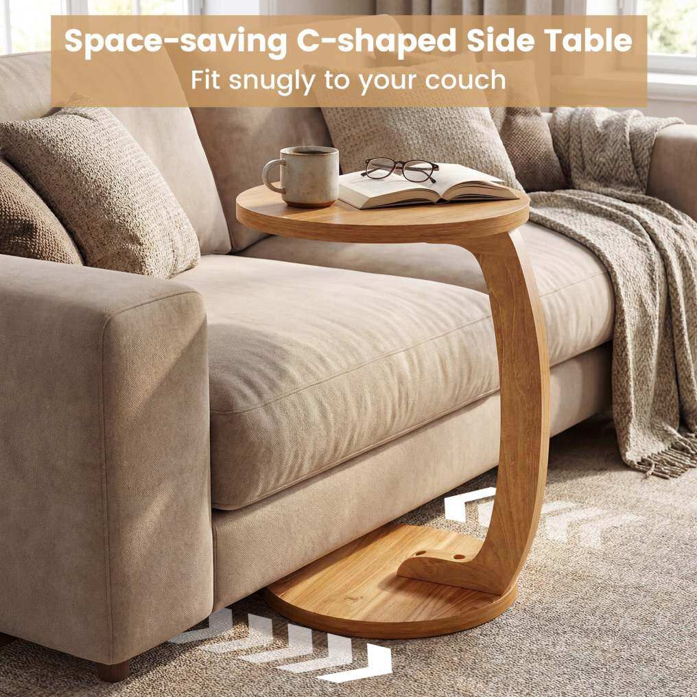 ● C-shaped Table: This C-shaped side table features an innovative low-profile base that slides effortlessly under sofas, beds, and chairs. The space-saving design keeps essentials within arm's reach while maximizing your floor space.