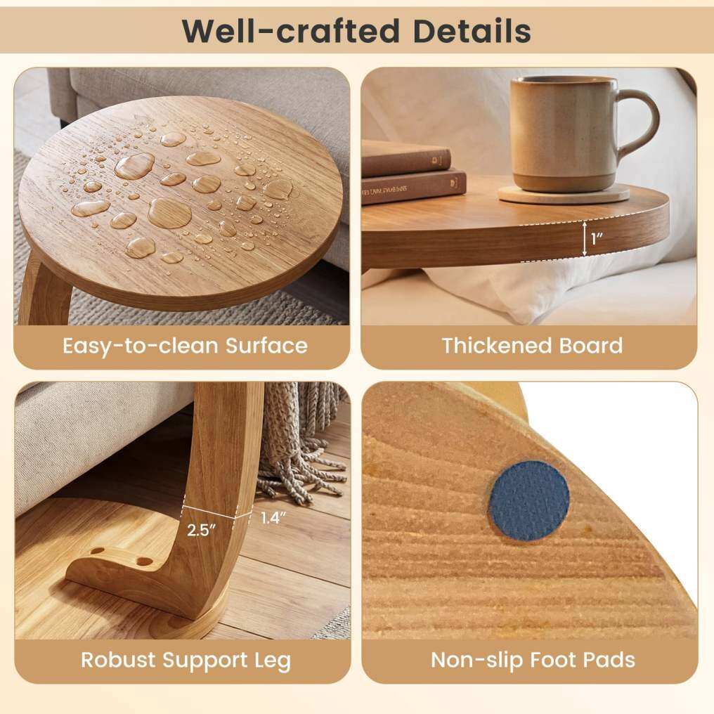 ● Solid Teak Wood Material: Crafted as a premium solid teak wood side table, this piece offers natural high strength with a warm, elegant wood tone. The 2.5" x 1.4" curved support leg and non-slip foot pads ensure superior stability and floor protection.