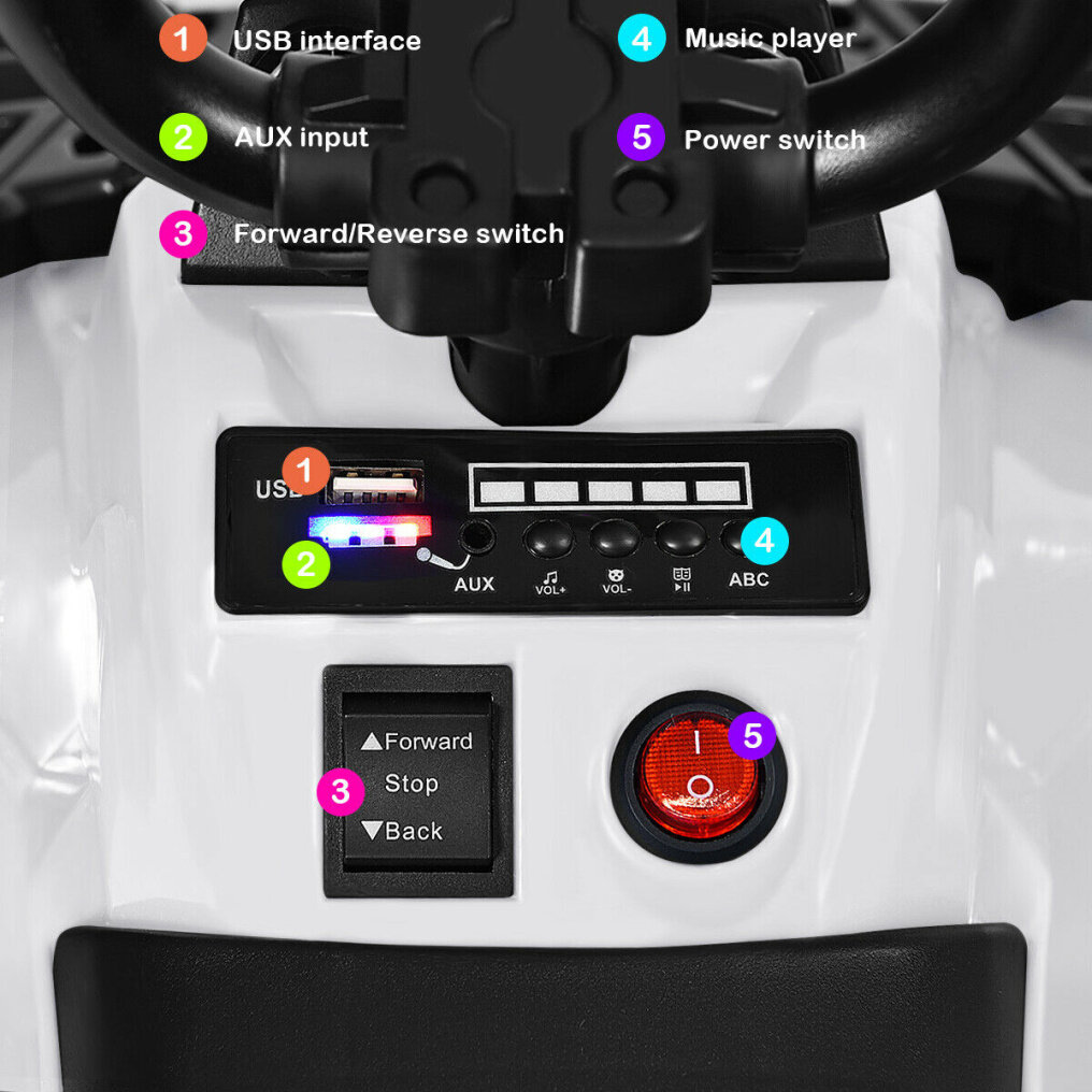 ● Multiple Functions: Equipped with MP3 player, AUX input and USB port, the kids ride on ATV allows you to connect to your device to play music or stories. Additionally, the vehicle is powered by rechargeable batteries so that it supplies up to 60 minutes of playtime, with a maximum speed of 2 mph.