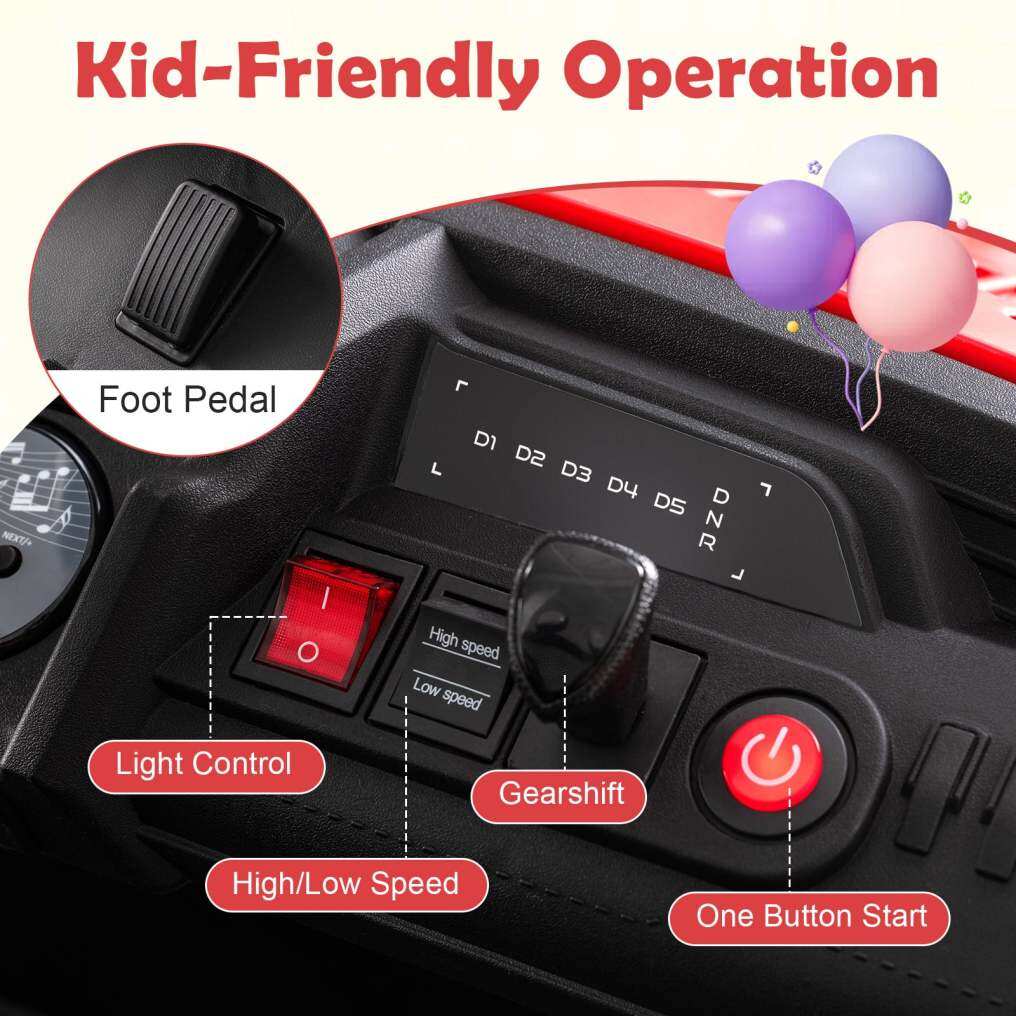 ● Simple, Intuitive Operation: The ride on truck car includes easy-to-use buttons to make each drive feel effortless for little hands. Kids can press to start, change LED lights, adjust driving speed, and shift gears just like a real driver, while the responsive pedal adds to their immersive experience.