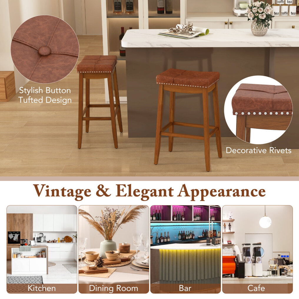 ● Versatile & Rustic Design: Delicate details like rivet accents and button tufted decoration on the seats add a touch of sophistication and visual interest. These rustic bar stools seamlessly blend into any kitchen, dining room, bistro, or pub.