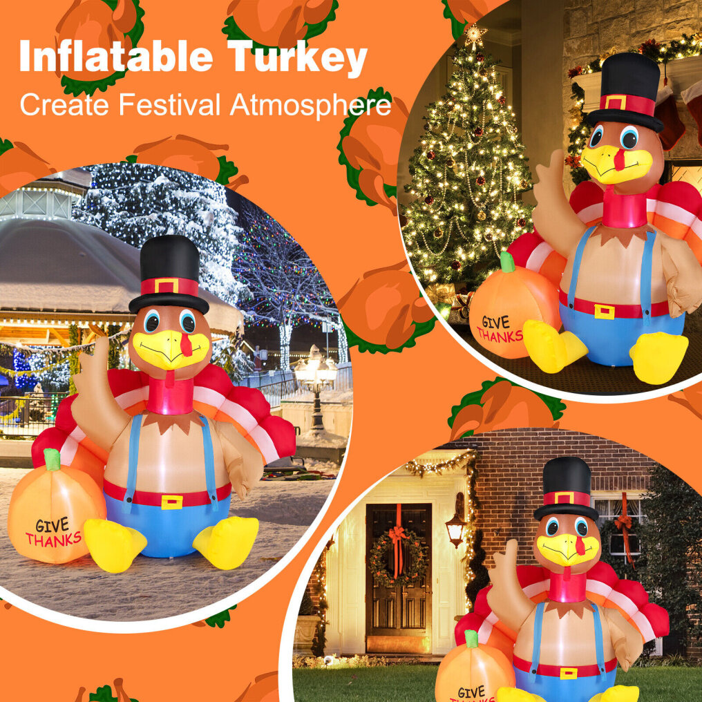 Ideal Thanksgiving Decoration: This 6 ft inflatable is an eye-catching decoration in any place. The vivid turkey dressed as a gentleman will attract attention of kids, guests and neighbors. The pumpkin with "GIVE THANKS" sign also echoes the spirit of Thanksgiving.