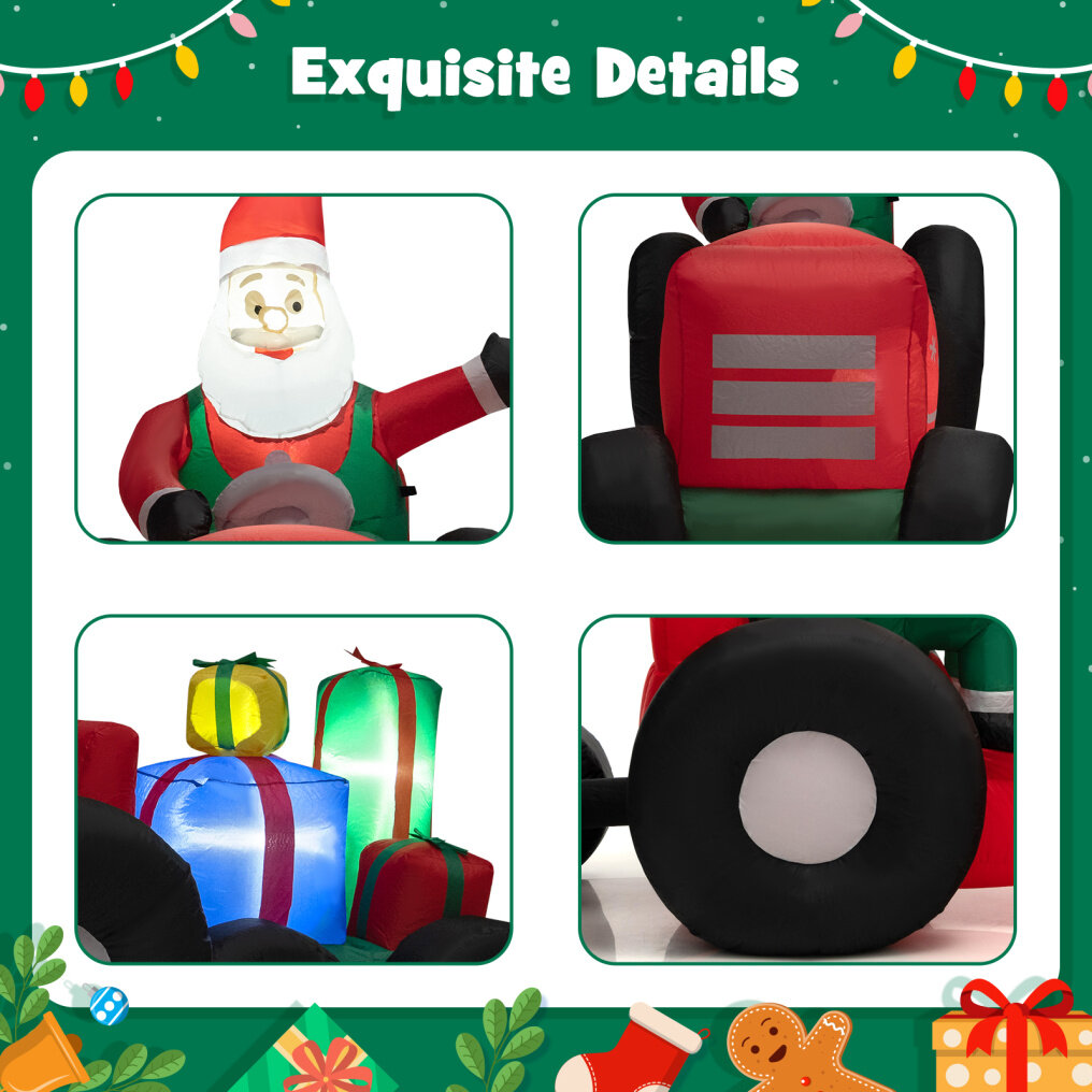 - Combines a Santa Claus, a tractor and stacked gifts to form a festive appearance
