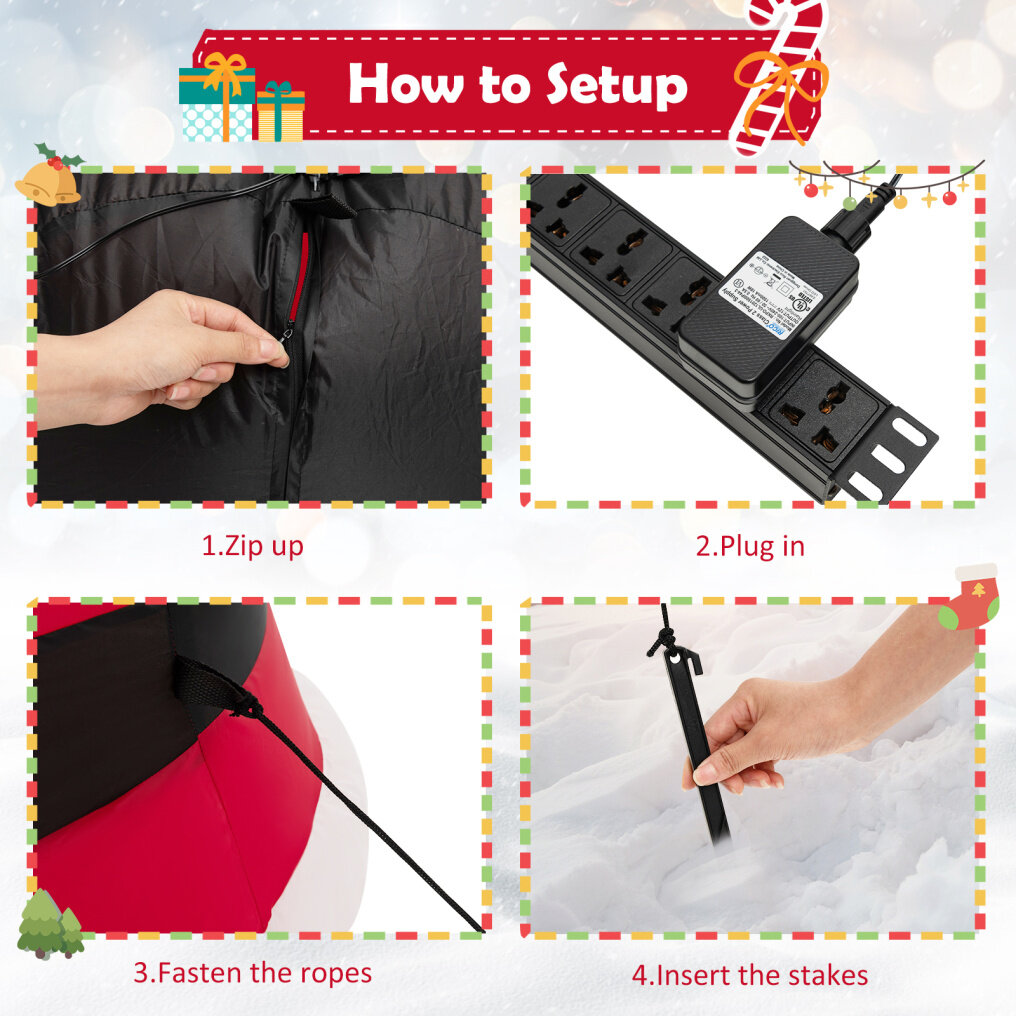 The 8ft giant inflatable Santa Claus with dazzling light effect will be the most eye-catching decoration in the neighborhood!