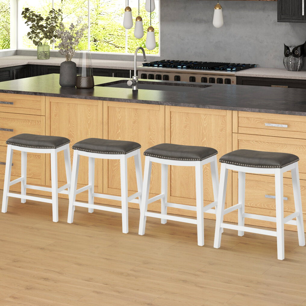 ● Easy to Assemble and Clean: The 26-inch bar stools come with easy-to-follow assembly instructions, allowing you to quickly and effortlessly assemble them. Besides, the easy-cleaning PVC leather material saves time on daily maintenance.