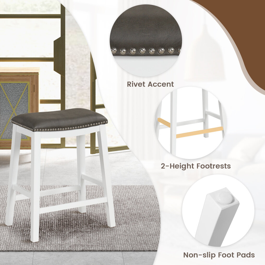 ● Elevate Your Space: The kitchen stool set effortlessly blends into any decoration with its timeless design and exquisite rivet accents. Add a touch of sophistication to your kitchen, bar, or dining area, enhancing the overall aesthetic appeal.