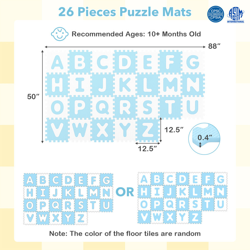 ● Trusted Materials: Made from BPA-free materials with a non-slip surface, these puzzle mats are secure and friendly to your little one. Complying with ASTM and CPSIA, the mats provide parents peace of mind.