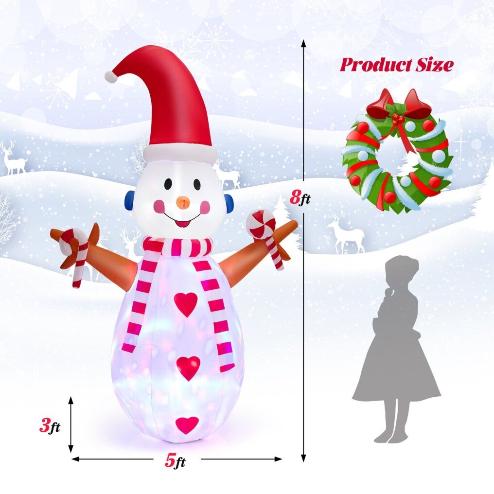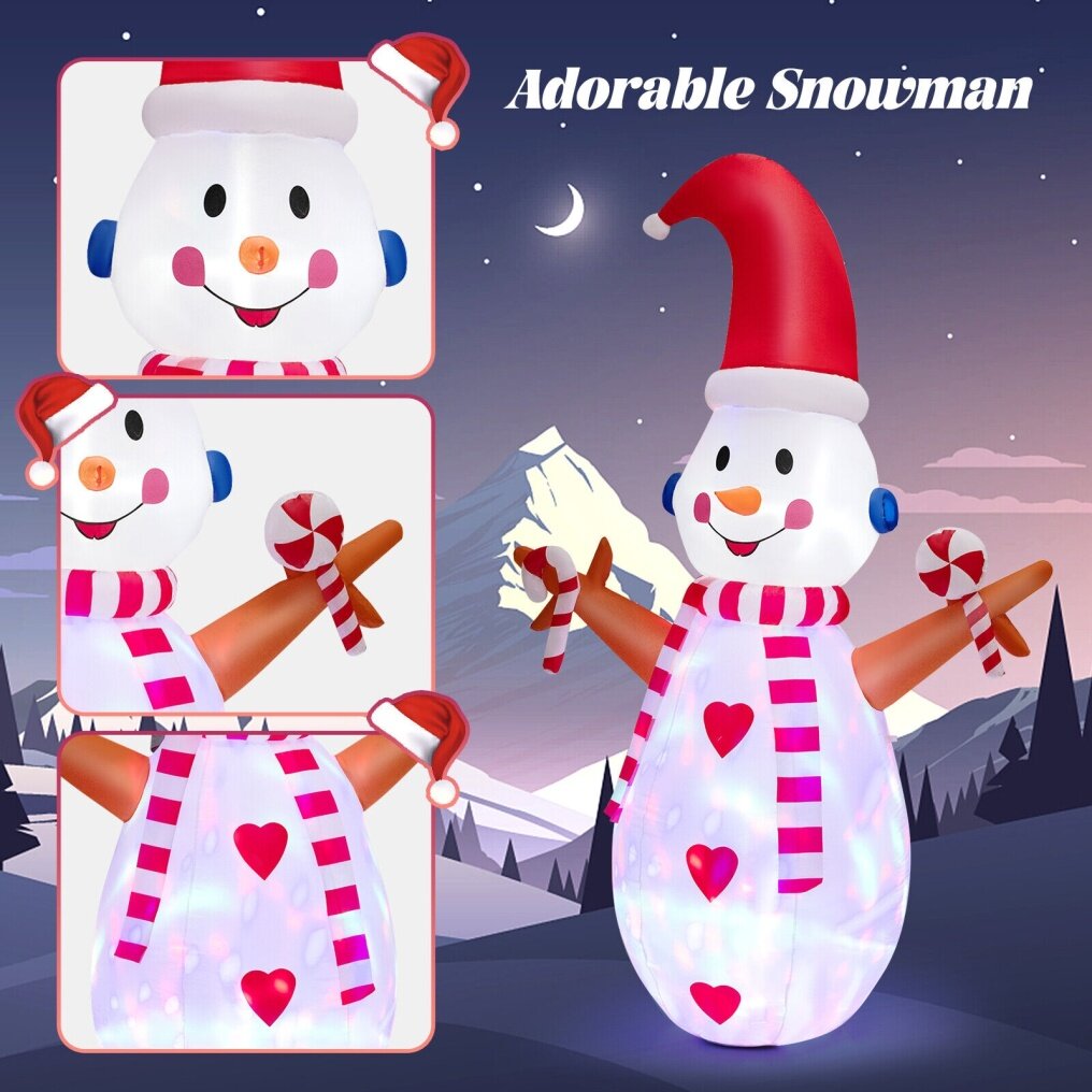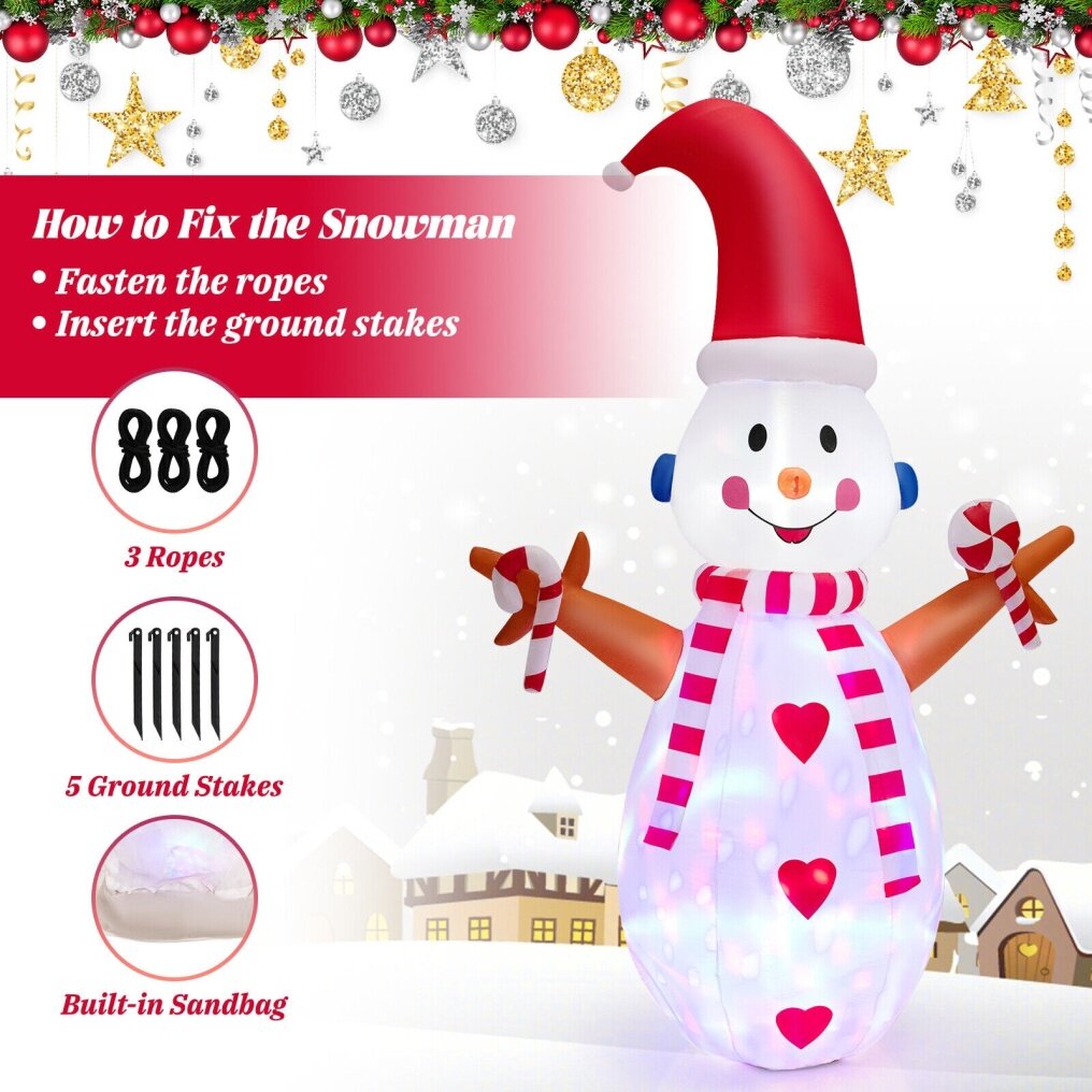 - Equipped with 3 ropes and 5 ground stakes to keep the snowman in place