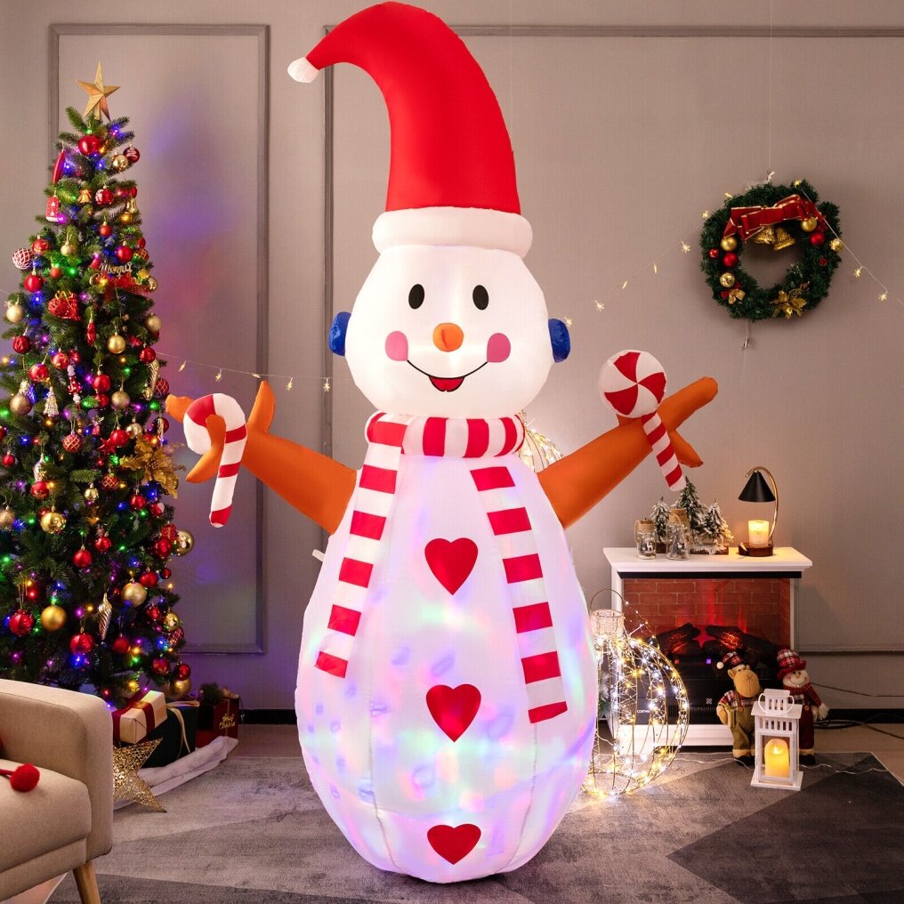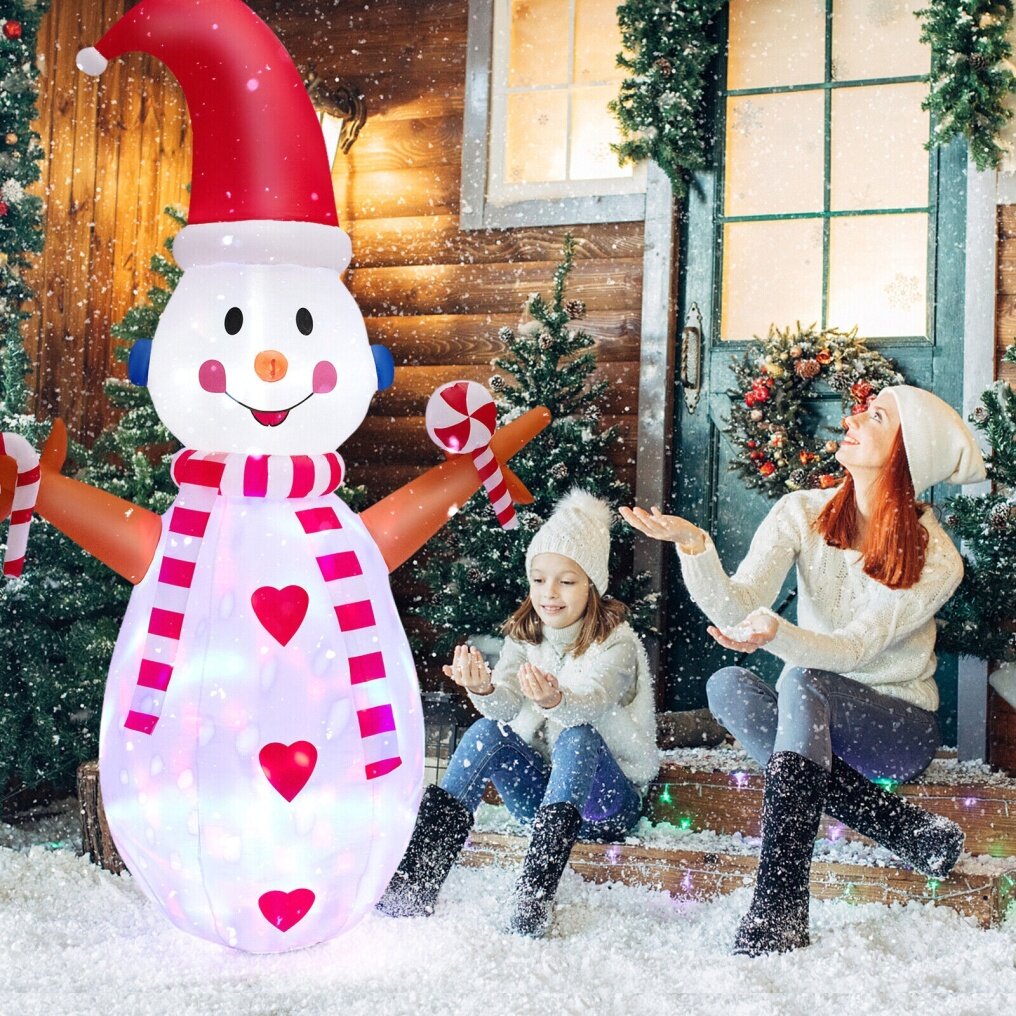 It features a multi-color dynamic light that gives out dazzling glows to attract the children’s and neighbors’ eyes. Apart from that, the snowman itself is lovely and attractive, with classic Christmas elements to create a festive atmosphere. What’s more, the Christmas decoration is fully-equipped for easy use. It inflates and deflates easily with the built-in air blower and the bottom zipper design. To keep stable in the outside, such as the yard, garden, or patio, the snowman comes with a fixed sandbag, 3 ropes and 5 ground stakes. What's more, the Christmas inflatable is made of high-density polyester fabric, which is durable and waterproof for outdoor use.