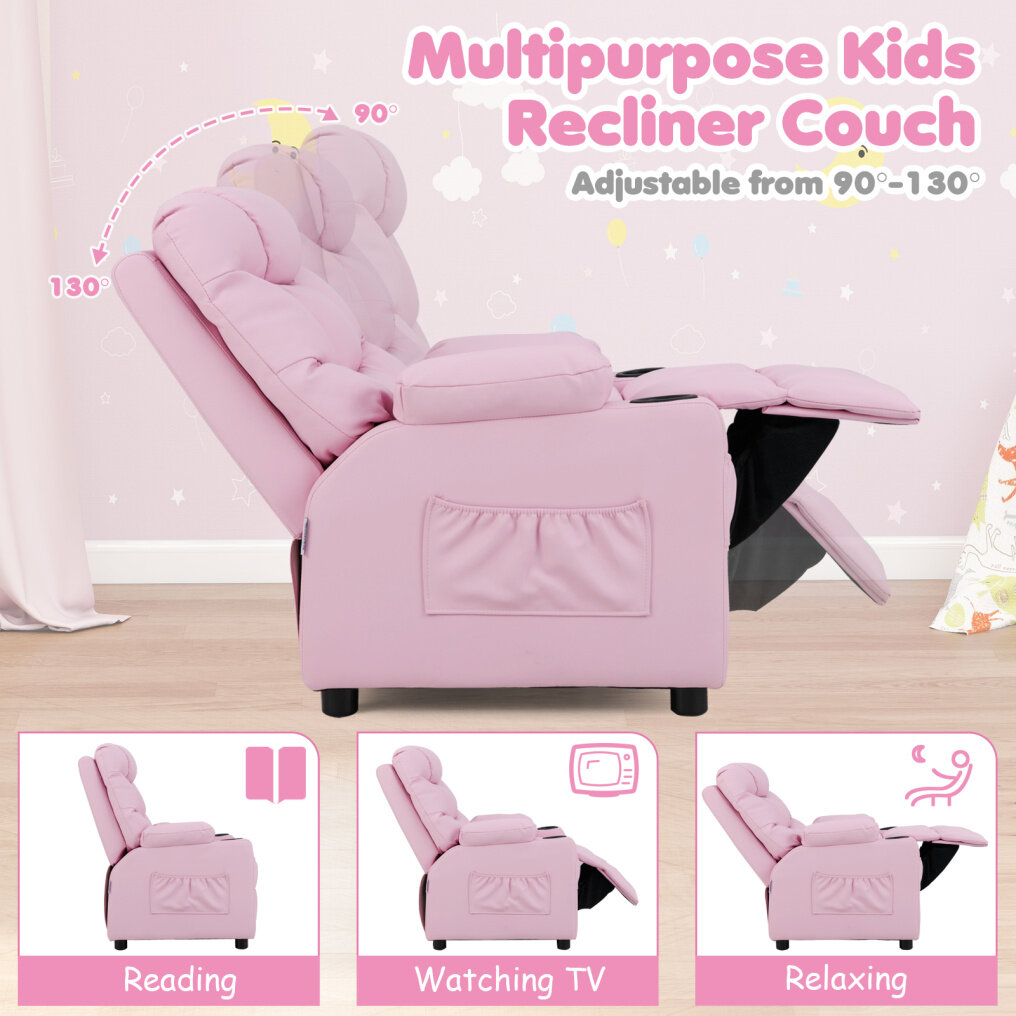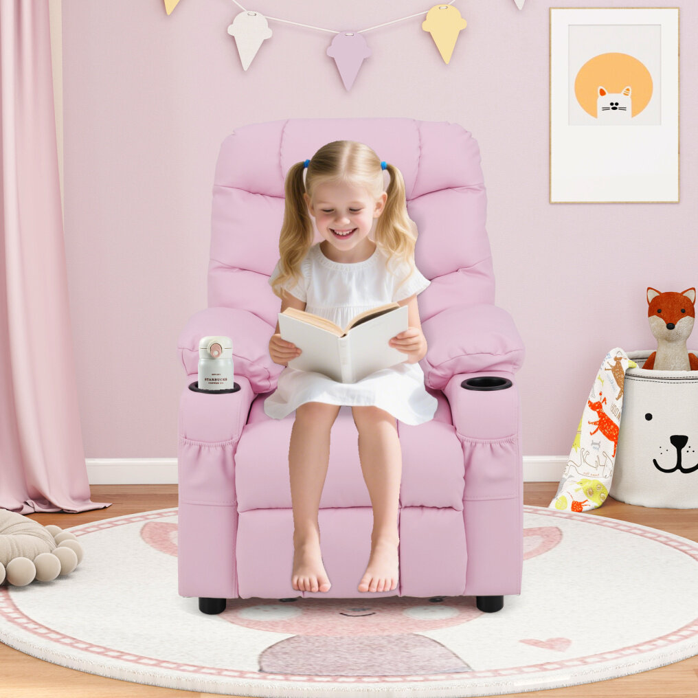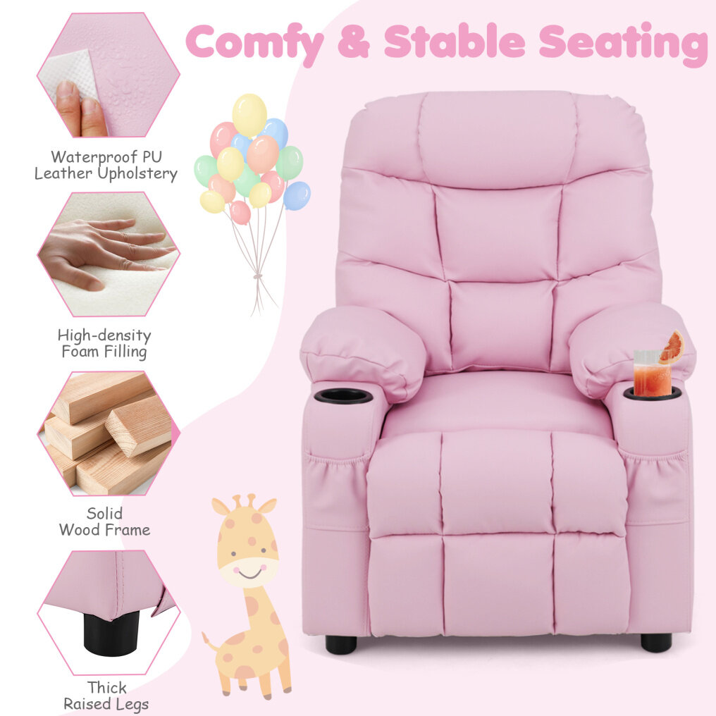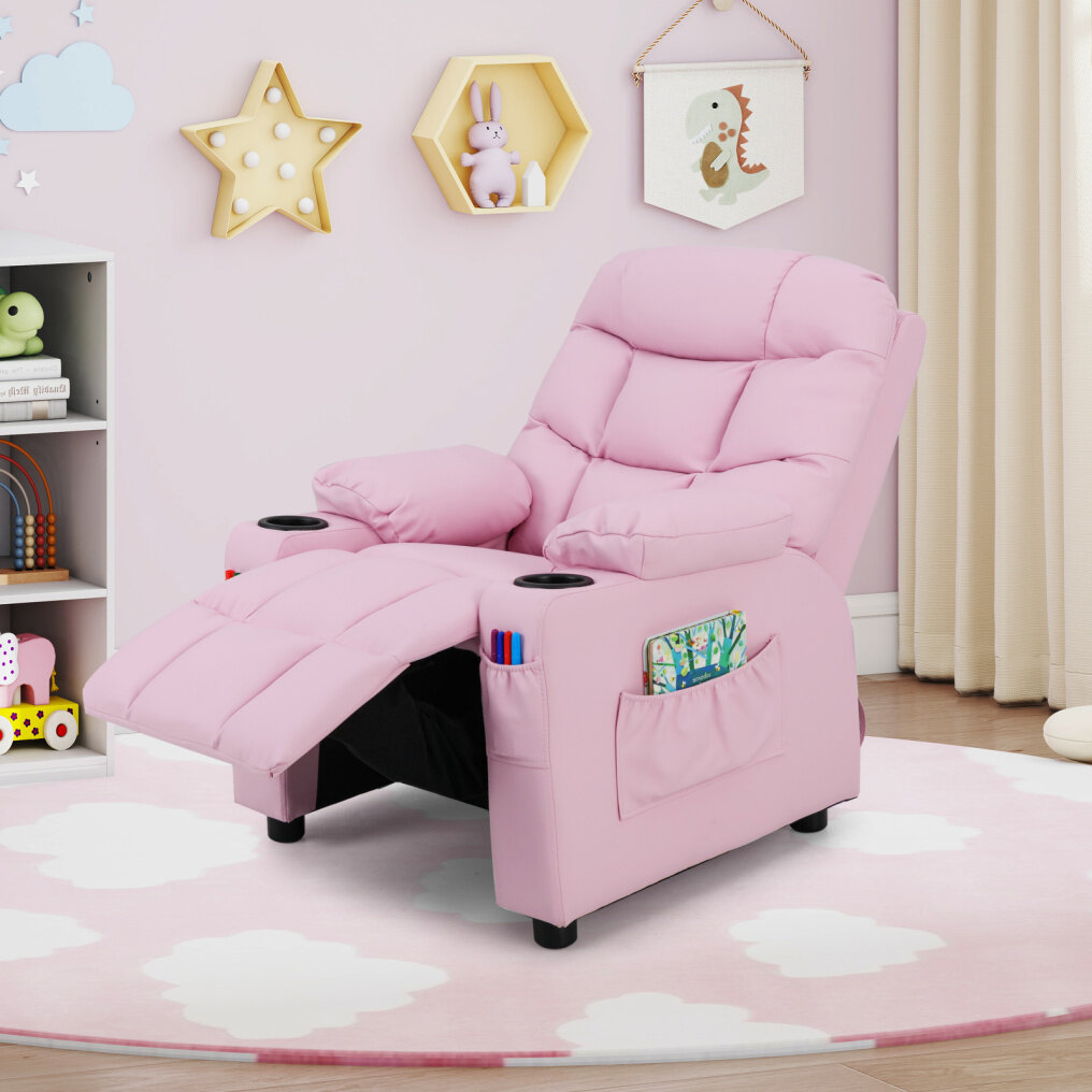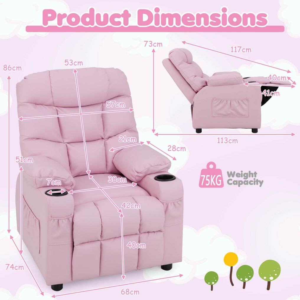 ● Comfortable Ergonomic Design: This kid's recliner is ergonomically designed with a high backrest and wide armrests for extra support to relieve sedentary fatigue. A soft and thick sponge-padded seat provides an ultra-comfortable sitting feeling, allowing children to get full relaxation.