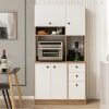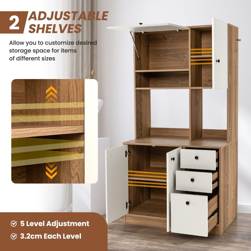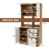 Ample Storage Space: This pantry cabinet creates multiple storage options, including a wide countertop, 3 cabinets, 1 open compartment and 3 deep drawers, to keep your kitchen clean and tidy. To fulfill your customized storage needs, 2 shelves can be easily adjusted to 5 heights or removed according to the size of items.