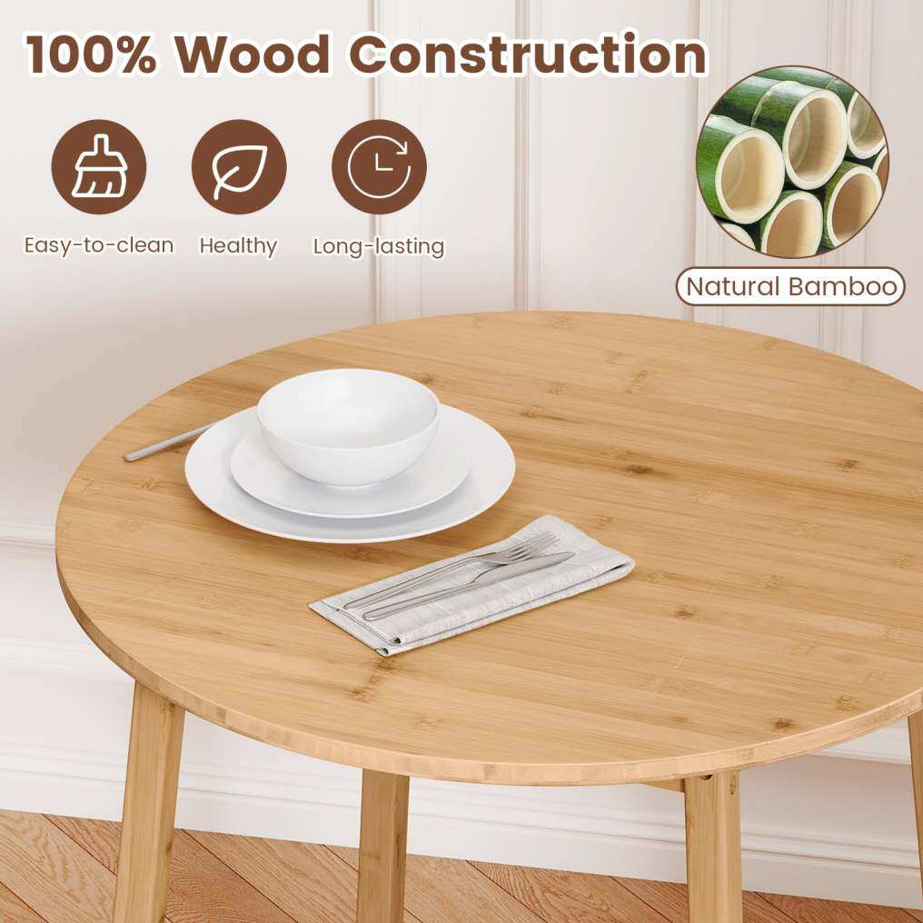 ● 100% Wood Construction: Crafted entirely from sturdy bamboo, the solid wood dining table is healthy for indoor use. Also, its scratch-resistant property and great durability can withstand daily use.