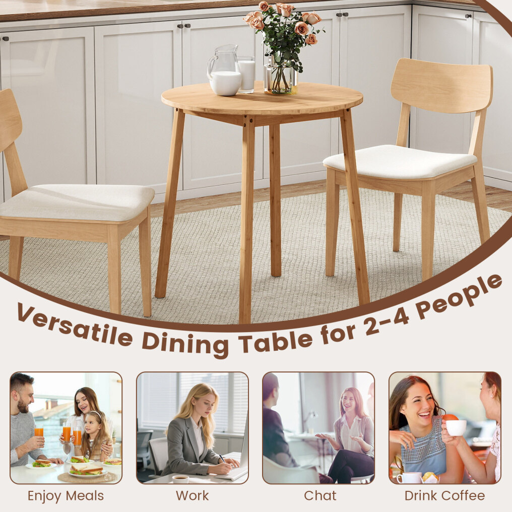 ● Space-saving Round Table: The 27.5" diameter top of the round dining table comfortably seats 2-4 without taking up extra room. Hence, it is an excellent choice for cozy kitchens, intimate breakfast nooks, or compact apartments where bumping into corners is a concern.