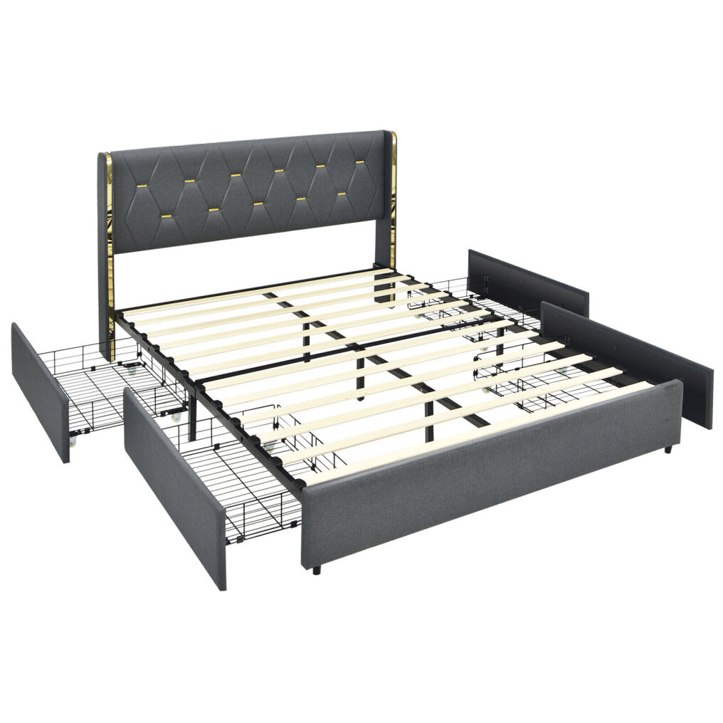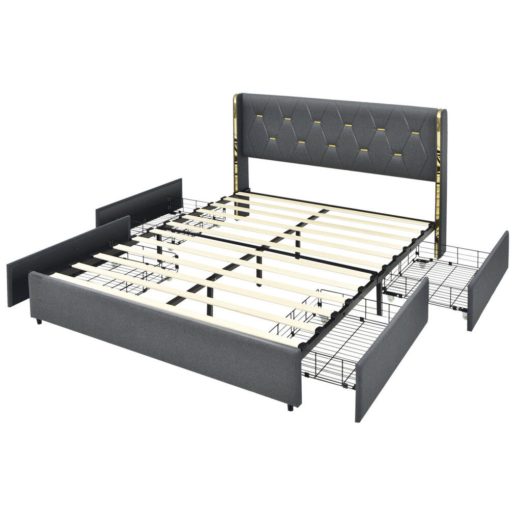 Four Roomy Drawers: This platform bed frame is designed with 4 large drawers to accommodate your pillows, bed sheets, seasonal clothes and so on. Moreover, each one is fitted with smooth casters, making pulling more effortless and protecting the floor from scratches.
