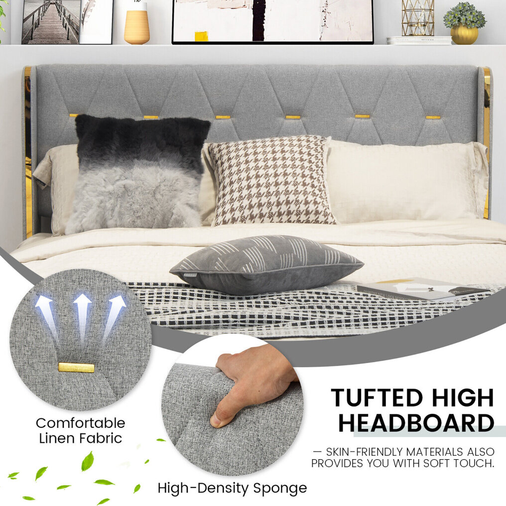 Cozy & High Headboard: Crafted of high-density sponge and breathable PU leather/linen fabric, the bed frame offers a very soft touch and avoids hurtful collisions. Particularly, its headboard features a proper height for you to lean on it stably and comfortably while reading a book before sleeping.
