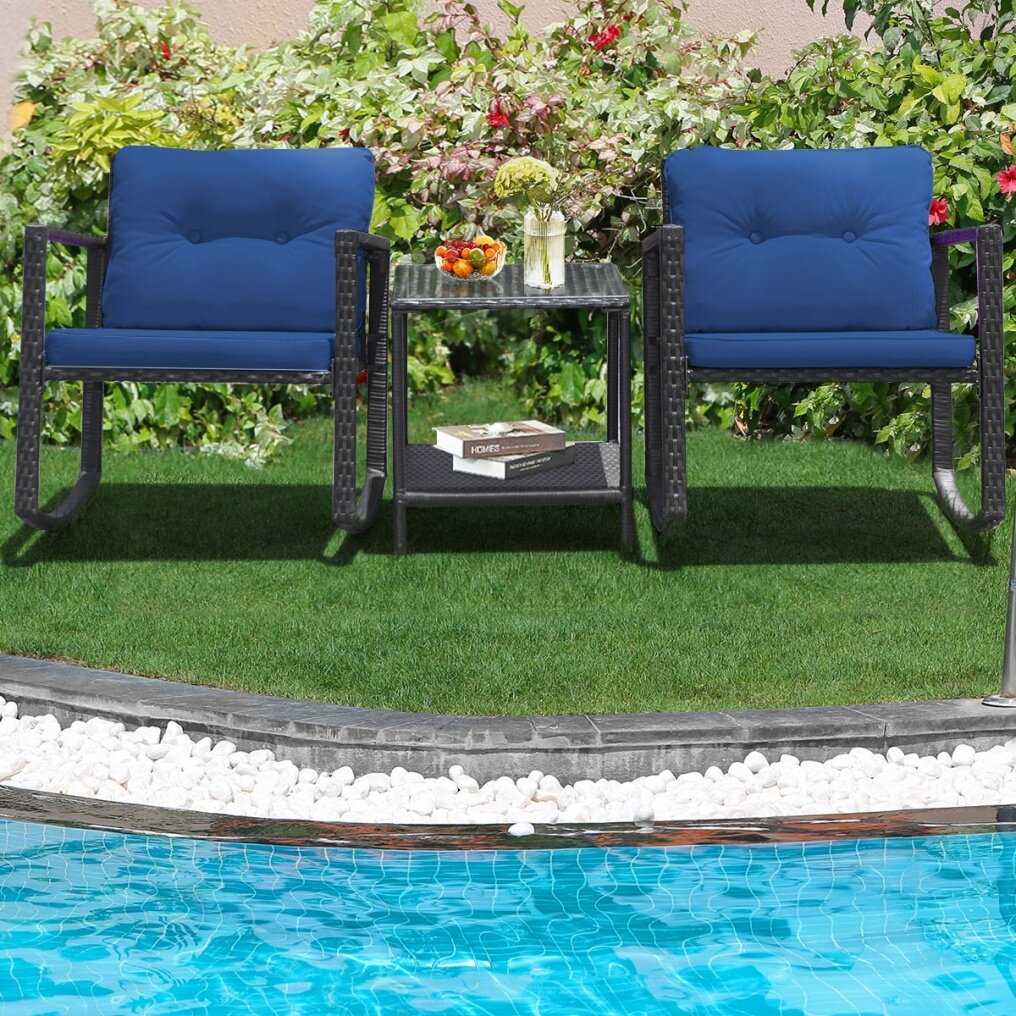 Great Outdoor Addition: Featuring a modern design, this patio conversation set matches different decoration styles and adds elegance to where you place them. 2 rocking chairs and 1 coffee table let you spend leisure time with your friend in the backyard, poolside, deck, etc.