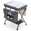 This baby diaper changing table has 3 adjustable heights from 38" to 40" which offers a suitable position to change diapers, as well as change clothes for babies. Thanks to the adjustable heights designed to meet the need of any parent, this changing table prevent backaches and strain. Made of a solid iron frame and durable 600D canvas, this changing table has great stability and can be used as long as your baby needs it. Besides, it comes equipped with a variety of large storage spaces that will keep everything tidy and neat in your nursery. What's more, with its space-saving design, you can store it behind a door or in a corner.