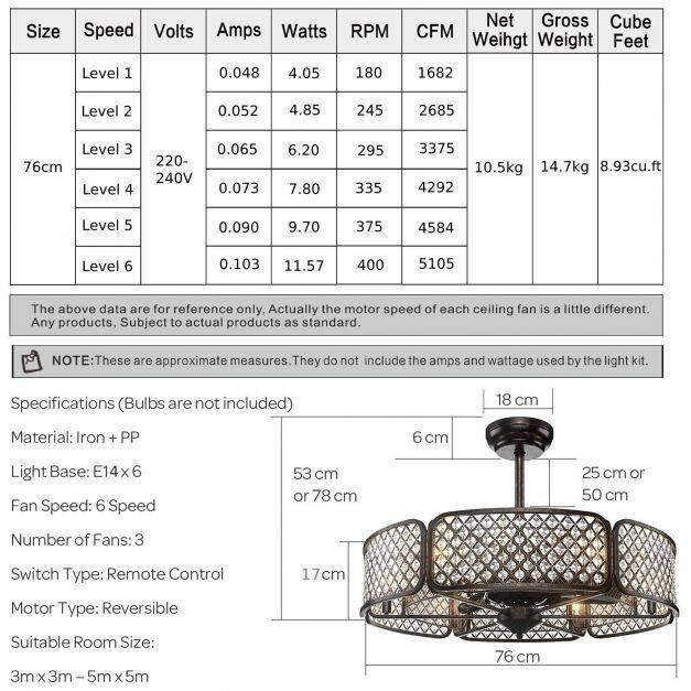 Multifunctional Design: This caged ceiling light is a perfect combination of decorating, lighting and fanning. The sparkling crystals dot on the outer surface of the retro stylish ceiling fan, making it a fabulous addition to multiple indoor places, such as the living room, dining room and bedroom.