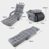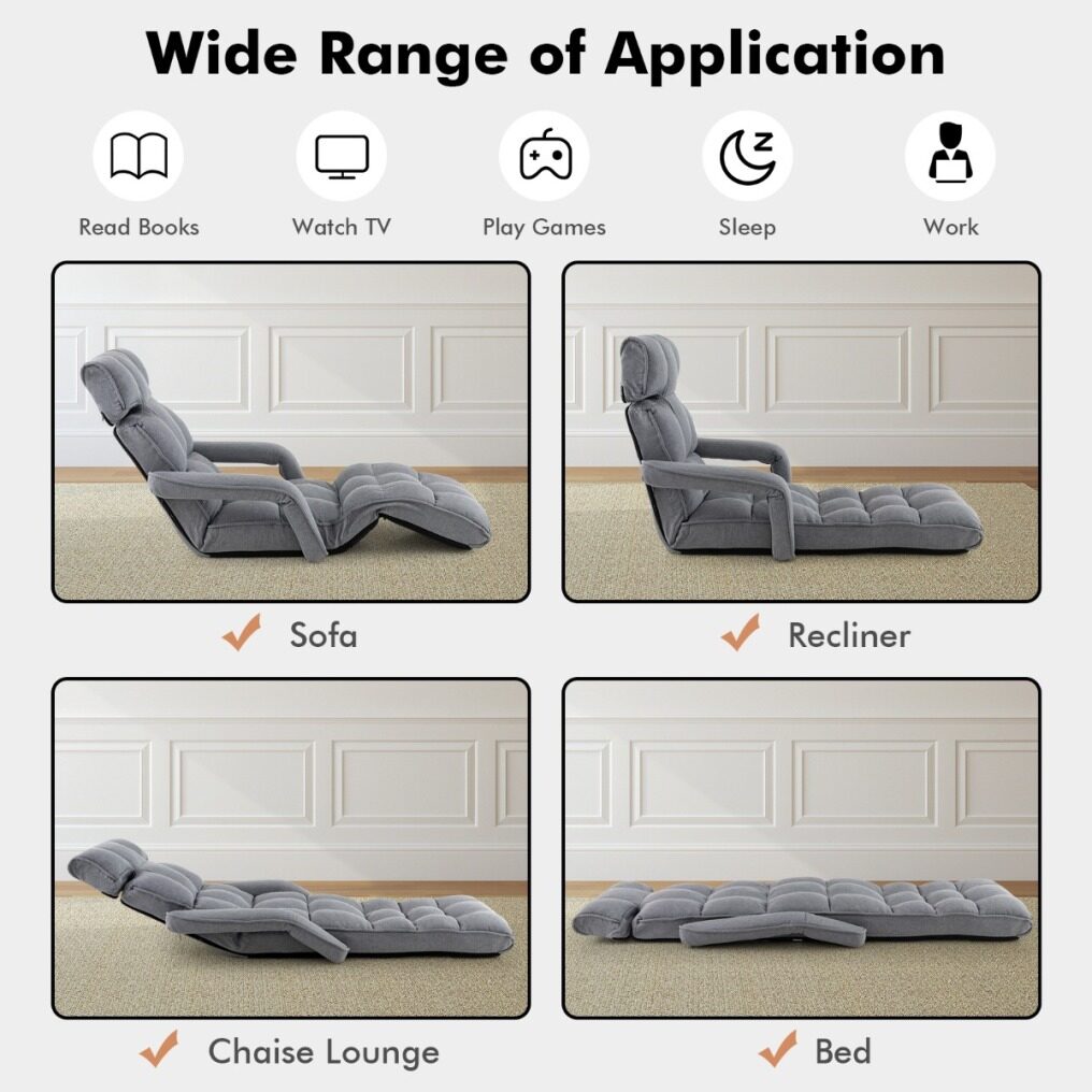 Adjustable Lazy Floor Chair: The headrest, backrest and waist part are adjustable, each with 6 adjustable levels, and the footrest has 8-position adjustments. According to your different needs, you can pull the armrests to adjust the backrest to a floor chair for reading, a chaise lounger for relaxing or a single sofa bed for napping.