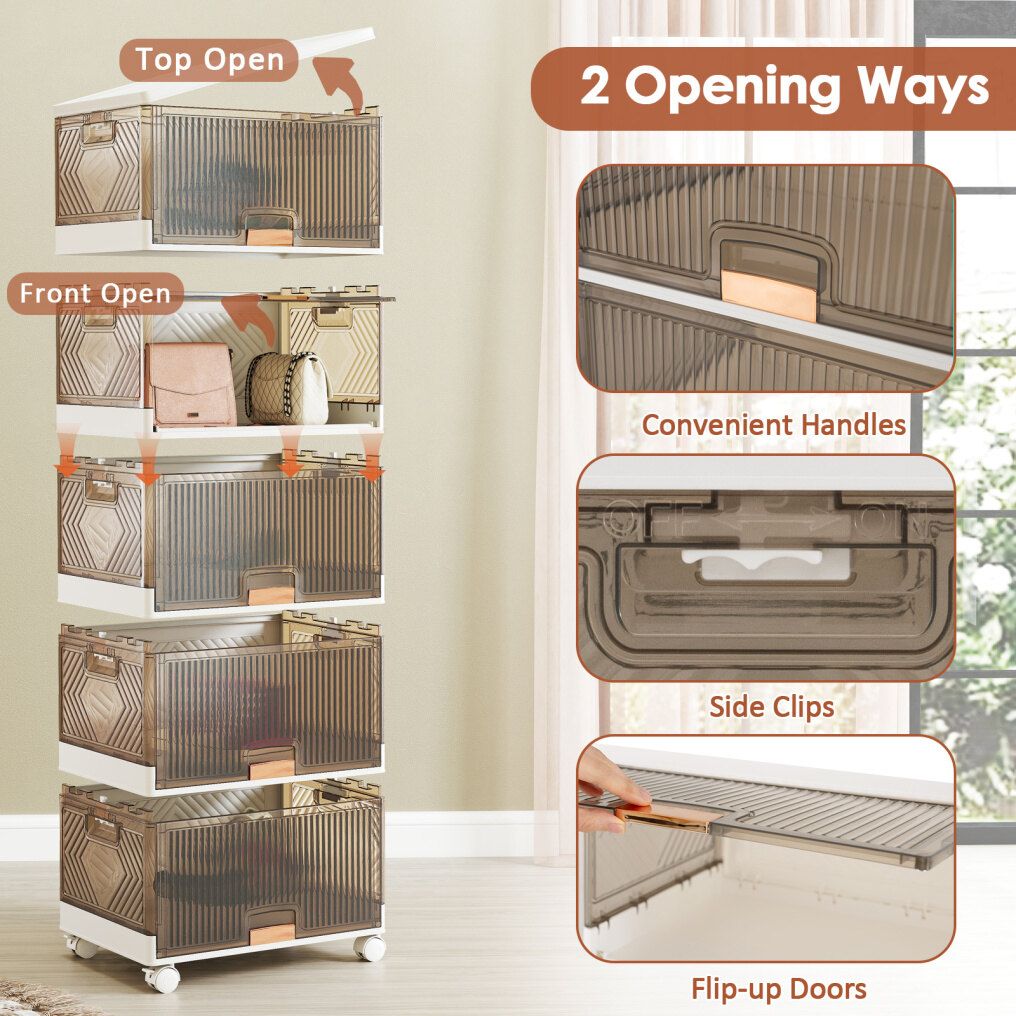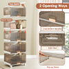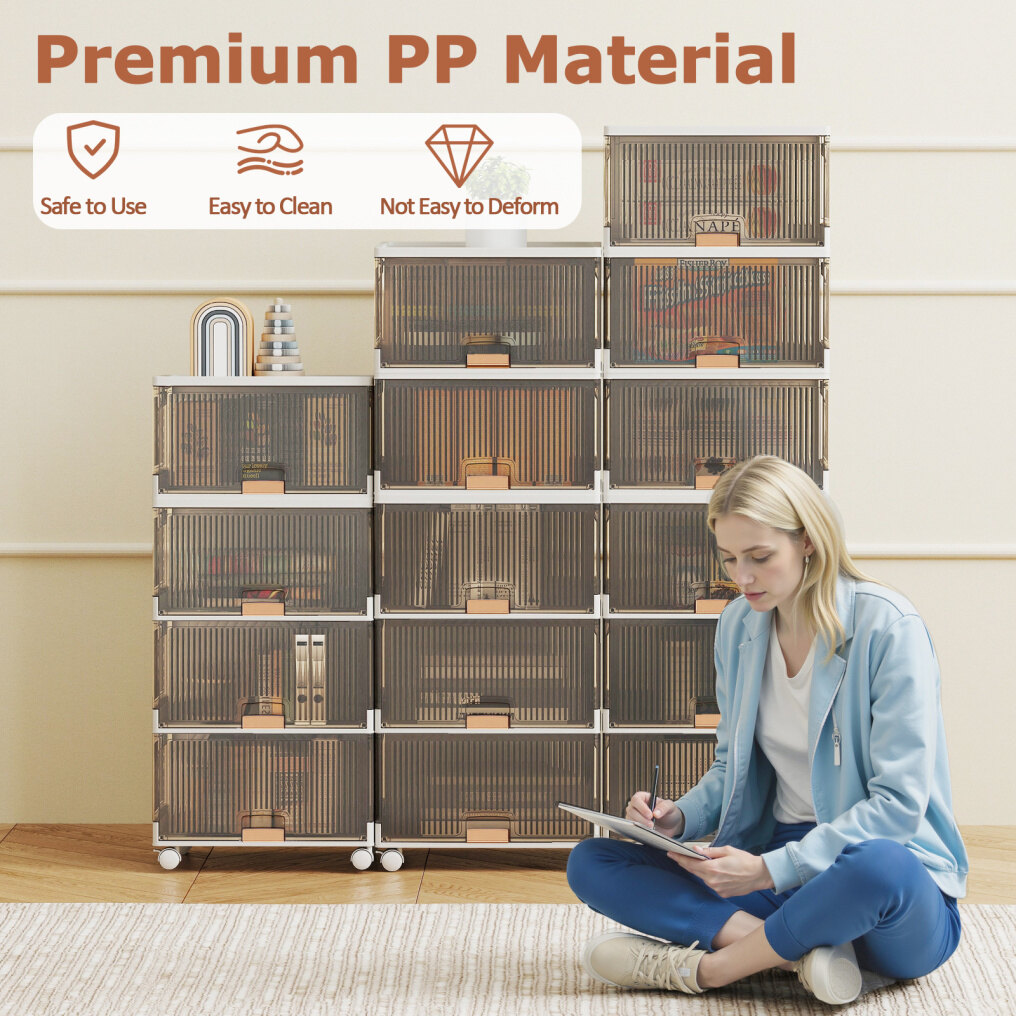 The foldable shoe box is constructed with sturdy materials, ensuring its longevity and functionality. The storage bins with lids are ideal for keeping your shoes or other items neatly organized. With a transparent design, the flip doors not only allow for easy identification of shoes but also add a stylish touch to your space. Featuring lockable universal wheels, this portable shoe rack provides convenient mobility and enhanced stability. Installation is easy with its interlocking design. When not in use, the large sneaker cabinet can be folded into a compact size to save space.