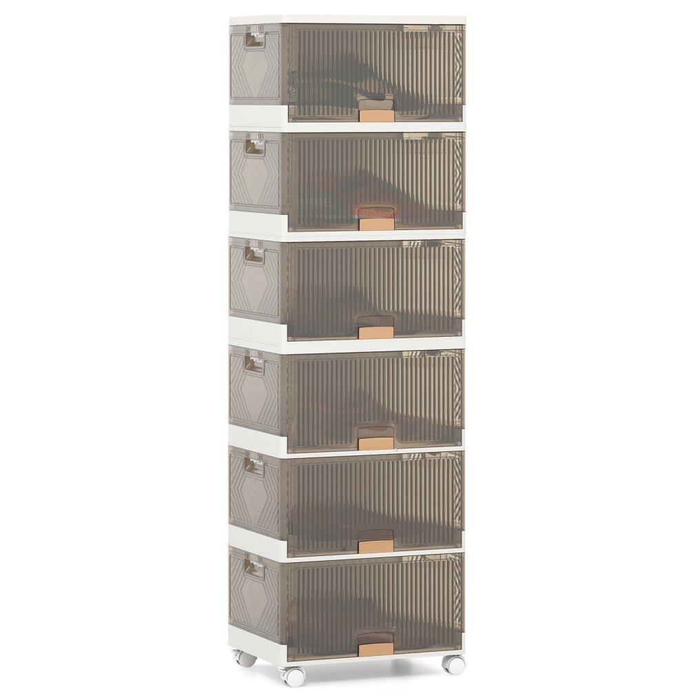 Lockable Universal Wheels: Featuring 4 universal wheels, this shoe box organizer box offers effortless mobility from one room to another. Moreover, 2 of the wheels are lockable to ensure stability when the large sneaker cabinet is stationery.