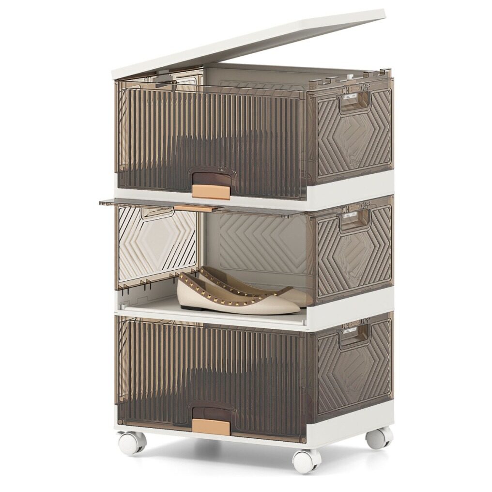 Lockable Universal Wheels: Featuring 4 universal wheels, this shoe box organizer box offers effortless mobility from one room to another. Moreover, 2 of the wheels are lockable to ensure stability when the large sneaker cabinet is stationery.