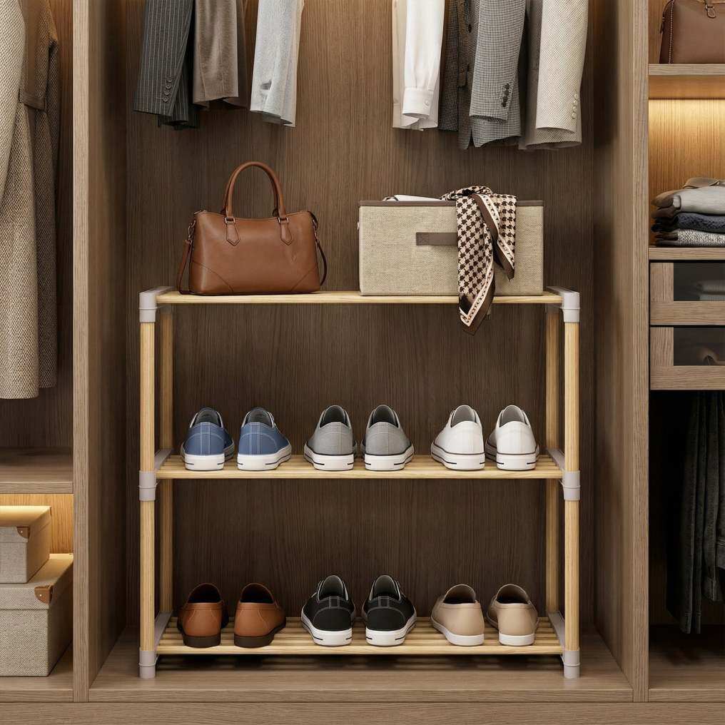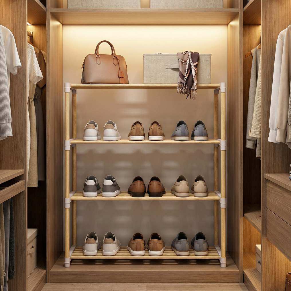 ● Functional 3/4-Tier Design: Featuring 3/4 spacious tiers with generous spacing, this shoe stand easily holds sneakers, slippers, sandals, and more. You can also remove the slats to create extra space for taller boots, adapting to different storage needs.