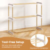 ● Tool-Free Setup: This space-saving shoe rack requires no tools for assembly. Simply slot the components together following the straightforward design, allowing you to set it up quickly without fuss or frustration.