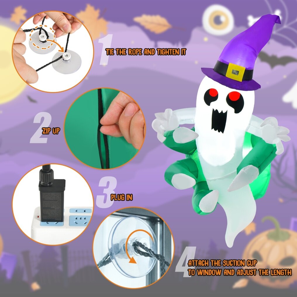 ● Horrible Halloween-Themed Design: The ferocious ghost is wearing a witch's hat and held by the sharp claws, which are very in line with the Halloween tones. The inflatable ghost seems to break out from window, which is sure to bring fright to your family and friends.