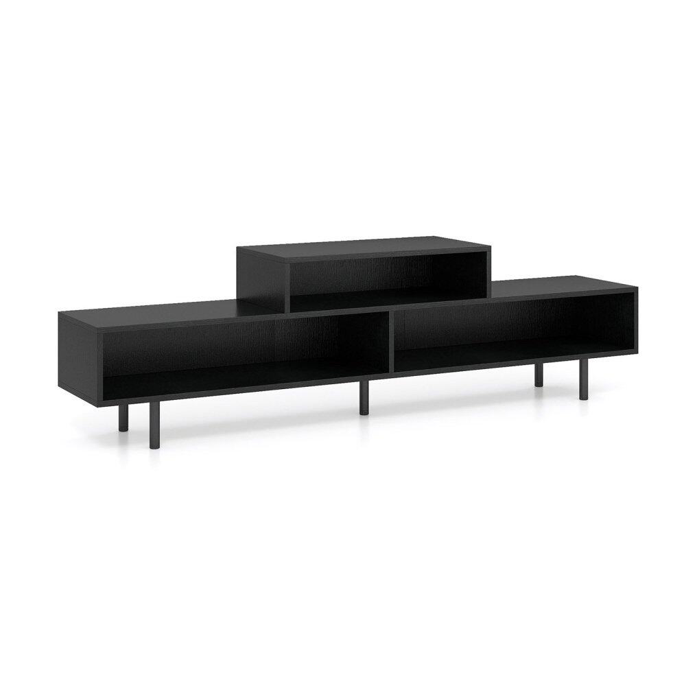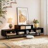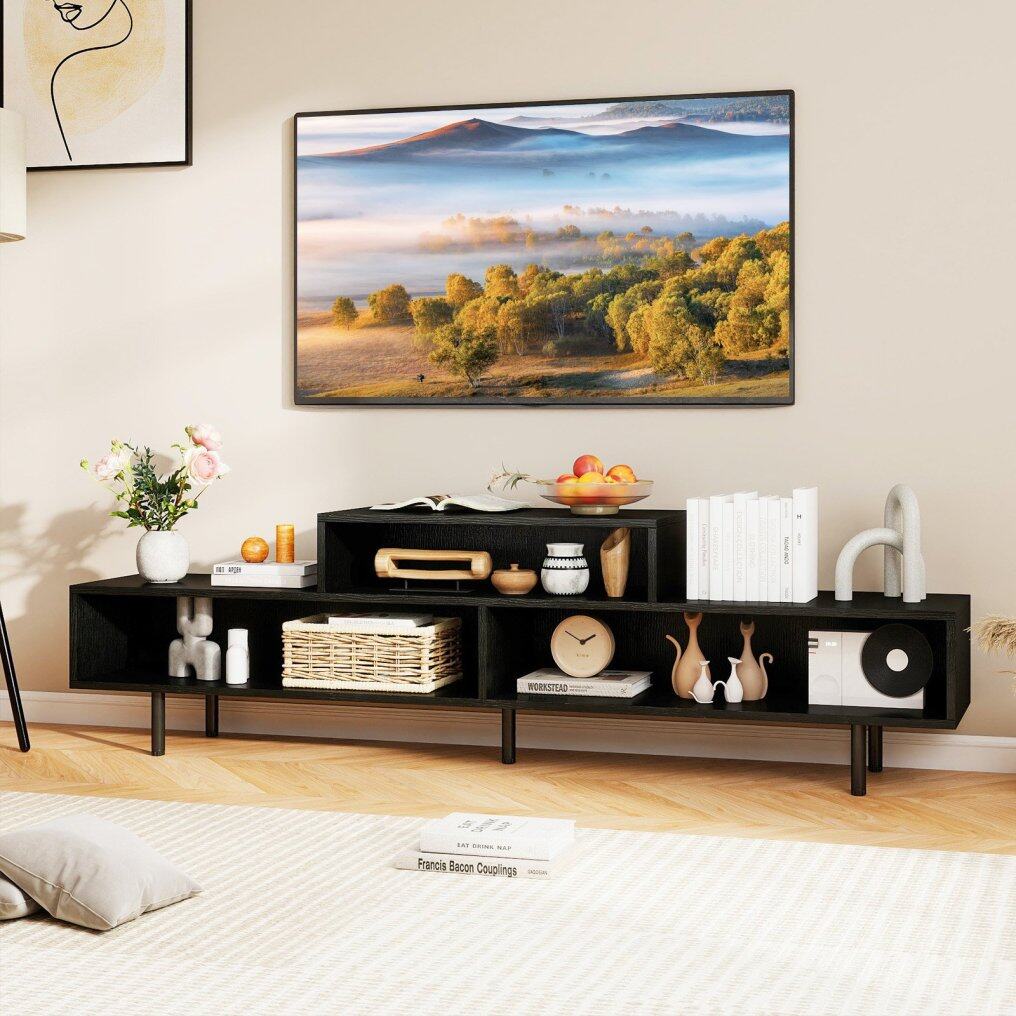 ● Classified Storage Space: This TV cabinet features 3 spacious compartments that offer versatile storage and display options for media devices, gaming consoles, and decorations. The open design allows easy access and helps keep your room neatly organized.
