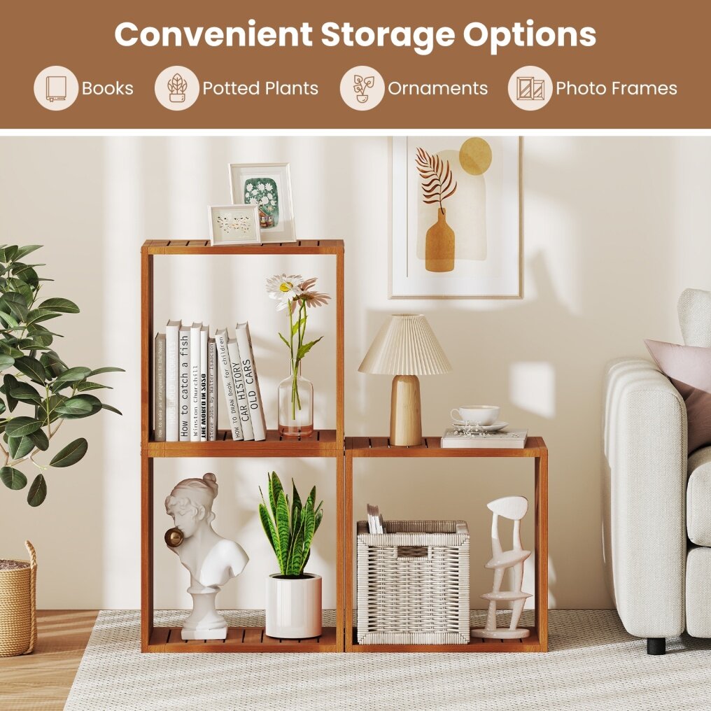 ● Robust Wood Framework: Each of the 3 cube bookcases is crafted from selected solid wood, which is anti-crack and high-hardness, ensuring durability for both indoor and outdoor use. Note: Please care the wood with maintenance oil regularly for longer service life.