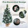 ● Pre-Decorated Design: The charming Christmas tree is adorned with 5 clusters of white berries and 10 clusters of artificial leaves along with 5 natural flocked pine cones. Save time and effort with this beautifully decorated tree.