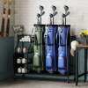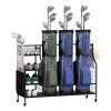 Accommodating up to 3 golf bags and 8 clubs, this golf bag stand offers versatile storage options with a 4-tier rack and 4 hooks. It also provides flexible installation options according to your needs. Mobility is easy with lockable universal wheels, and the sturdy metal frame ensures durability. Ideal for home, garage, or golf club use, this golf bags holder keeps all your golf essentials neatly stored and easily accessible, making it a must-have for any golfer.