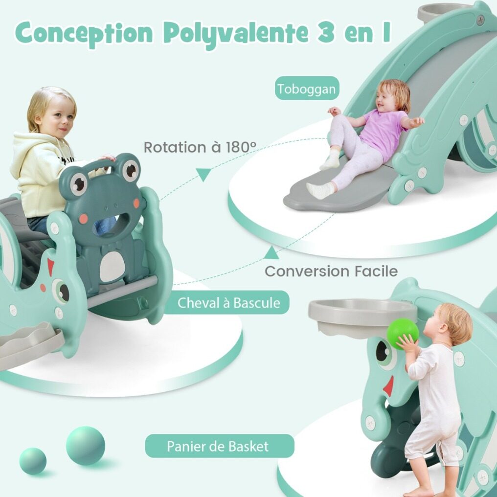 ● 3-In-1 Convertible Game Center: Thanks to the 3-in-1 versatile design, the rocking horse and slide set allows kids to enjoy the joy of rocking, sliding, and shooting hoops. The rocking horse can be effortlessly transformed into a toddler slide with a basketball hoop by rotating it 180°.