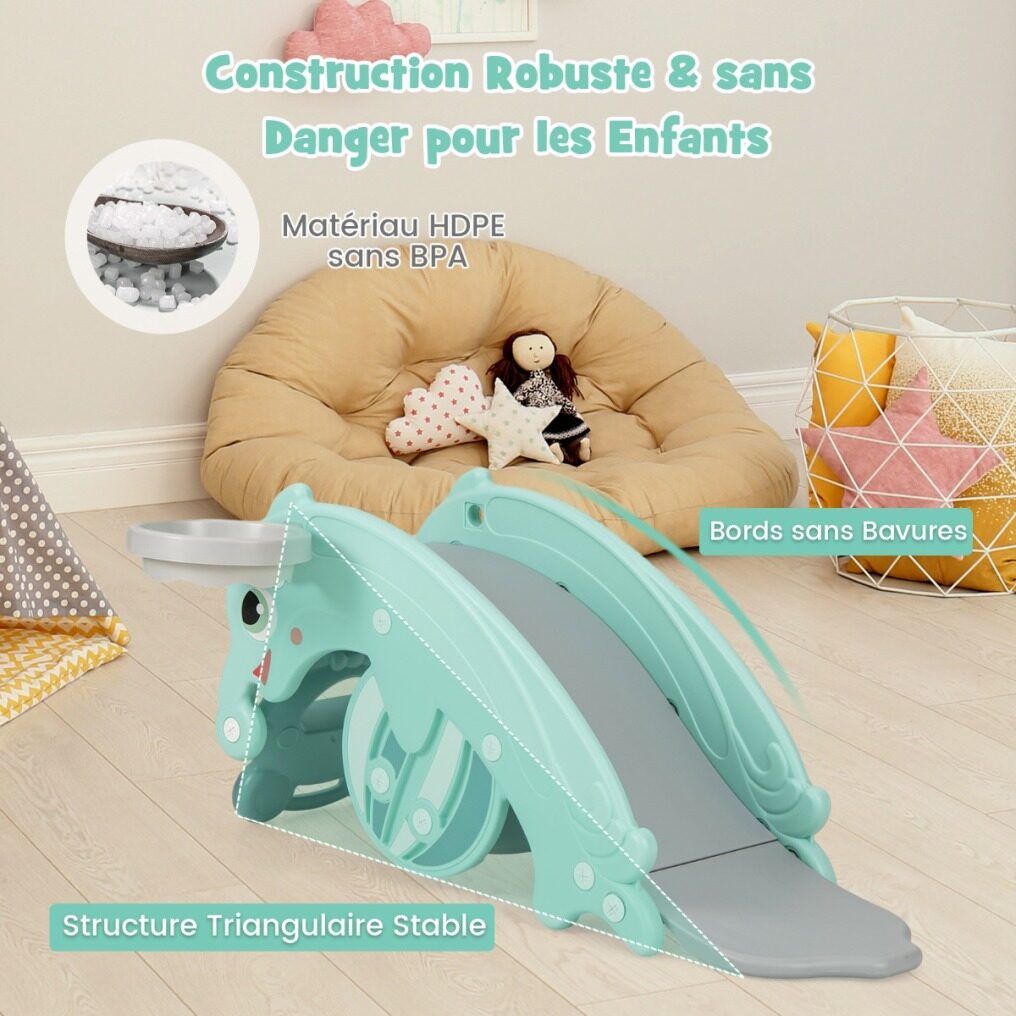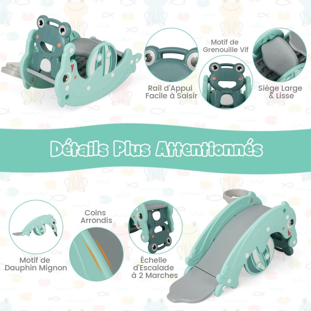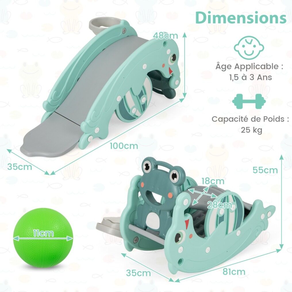 ● Cute and Educational Toy for Kids: The kids slide rocking toy is a nice gift option for toddlers 1.5-3 years old. Featuring a vivid frog pattern and a cute dolphin pattern, it is sure to appeal to children of different ages. It not only provides your litte one with hours of fun, but also helps to exercise their motor skills and coordination ability.