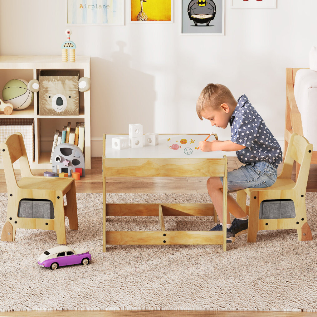 ● 3 In 1 Design: Featuring a detachable double-sided tabletop with a blackboard on one side and a whiteboard on the other, this kids table and chairs set is perfect for drawing, writing, reading, eating or playing. Please note: The whiteboard can only be drawn on with crayons.