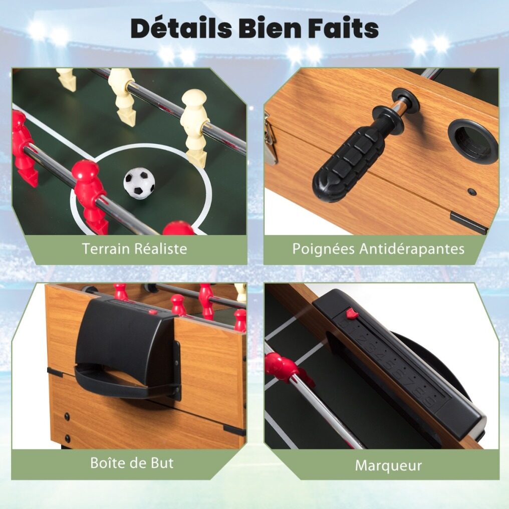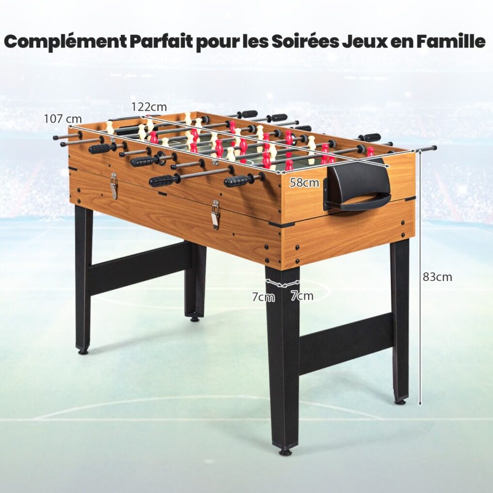 Our multifunctional game table allows you to compete with your friends and family and fully enjoy the game. This 48-inch combination game table includes a billiards table, a slide hockey table, and a foosball table, all very compact. It also offers different game options for your evenings with friends. The easily interchangeable tabletop allows you to quickly switch between games. The scoring system allows you to track your wins and losses during your pool, slide hockey, or foosball matches. Its unique design includes a stable frame and iron rods for increased durability. The rubber handle is not only non-slip but also more comfortable. Numerous game accessories allow you to fully enjoy every game.